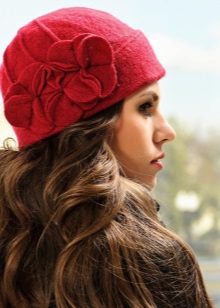 Today's collections of Italian designers contain many models of caps of very catchy tones. These are scarlet, blue, orange, yellow, cornflower blue, lilac, purple, green, purple and so on. Also, there are quite complex combinations of these shades.