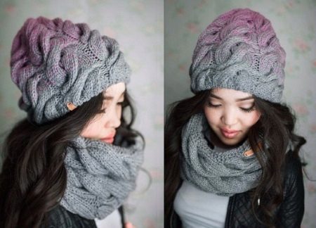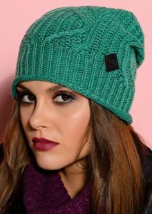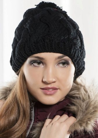 Hats made of thick wool are in fashion again. This is a mating "pigtails", "bumps", "ladder". When choosing such a model, pay attention not only to the beauty of the pattern, but also to the mating relief. This hat looks volumetric and blends well with any outerwear.