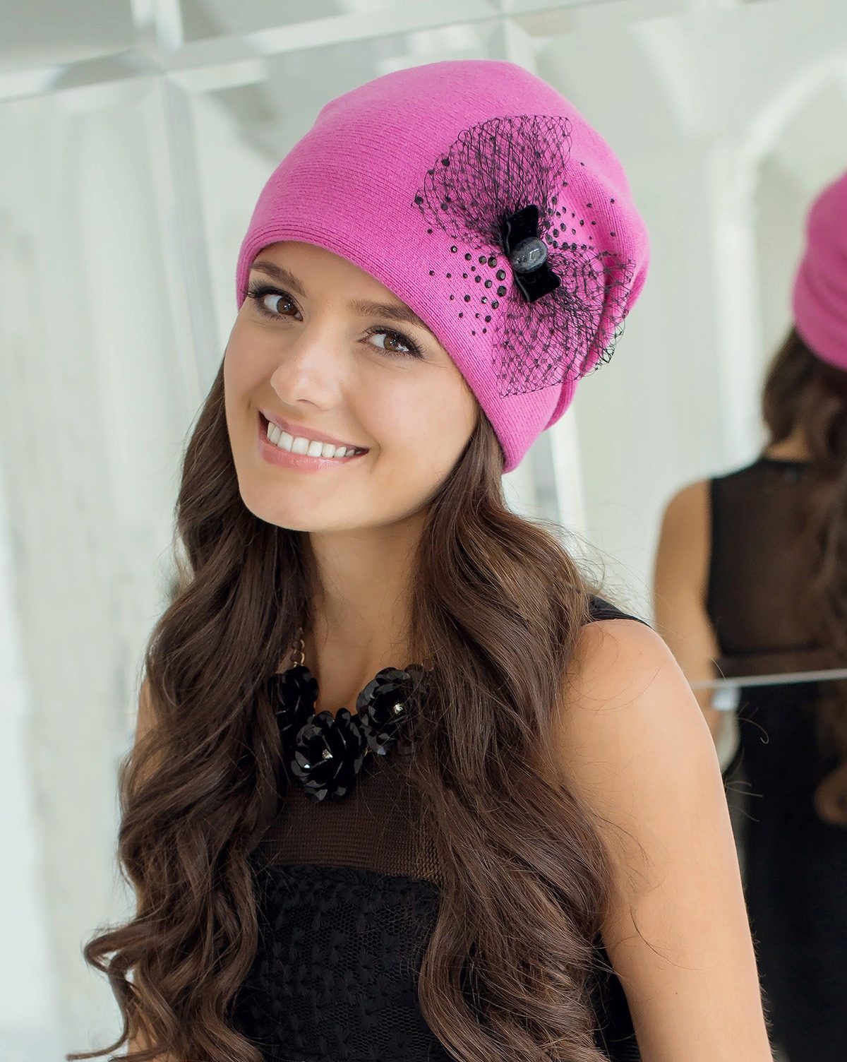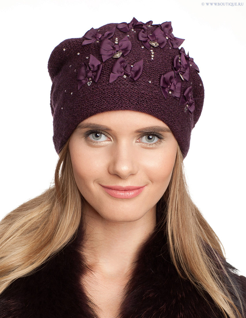 This is a very soft and pleasant material. He gently fits his head. Knitted hats can be in any color. Beanie is the most popular model. It is a winter knit or crochet hat. She is recommended to women of fashion of any age. Most often bears are worn with inflated jackets or quilted ski suits. However, stylists are strongly advised to combine them with fur products.