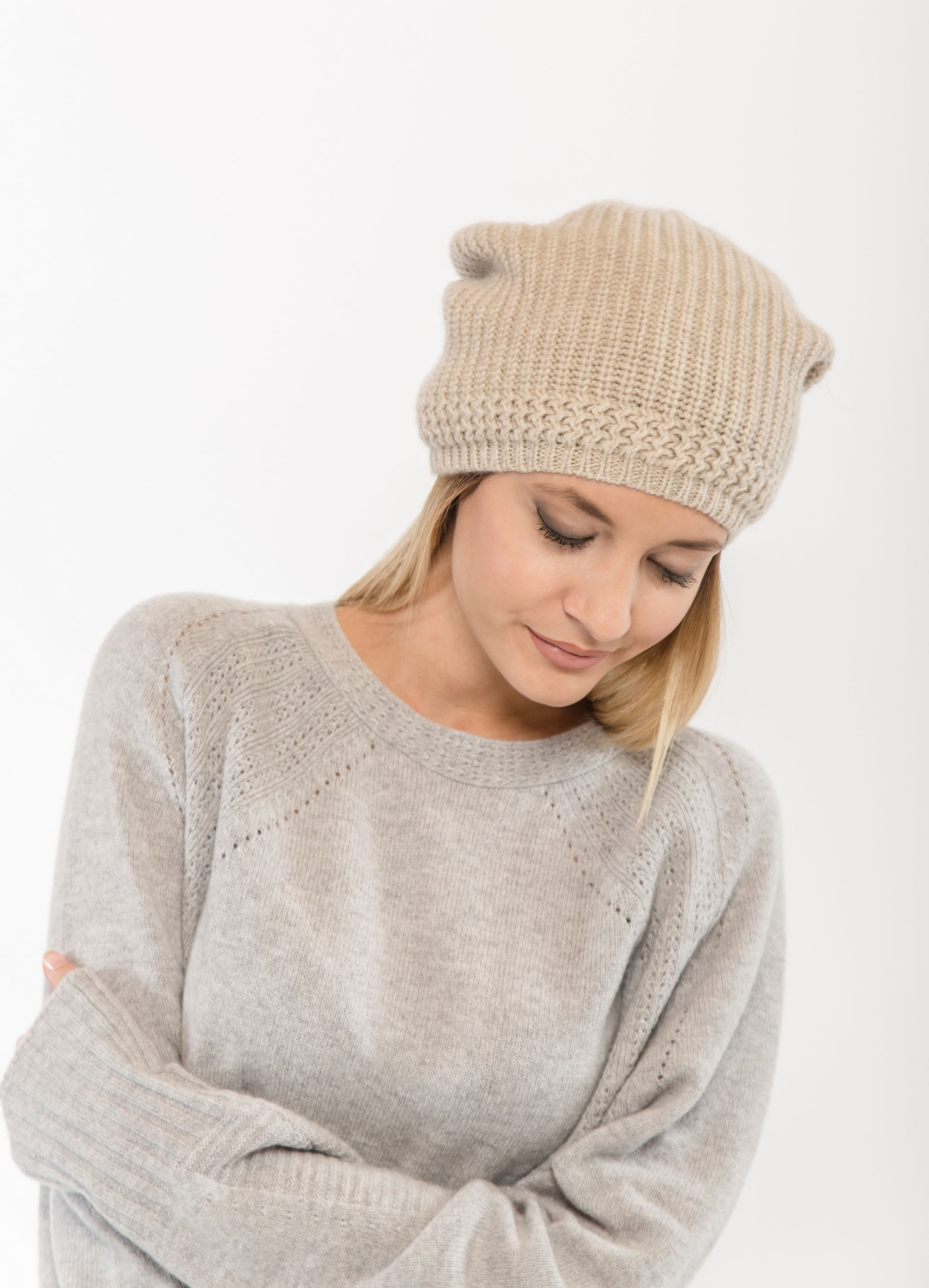 The most important advantage of a cashmere hat is the hypoallergenic ability of the material, due to which it becomes the most relevant accessory for women with sensitive skin. In this case, you should pay attention to the label to make sure that the composition of the cap does not contain additional synthetic yarns or other allergenic material.