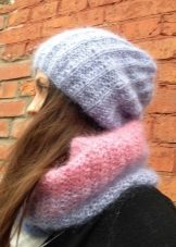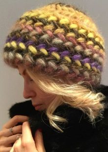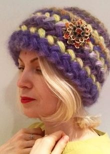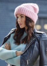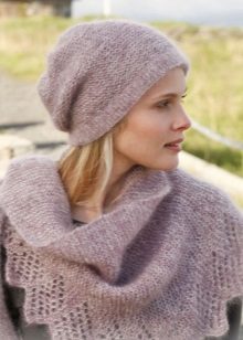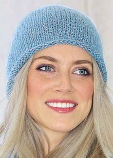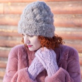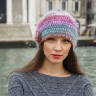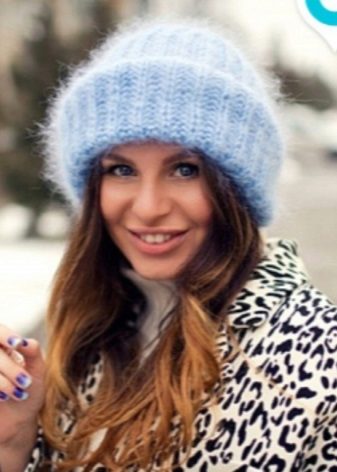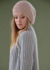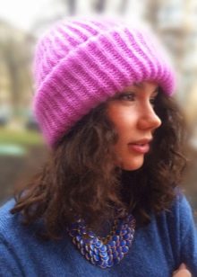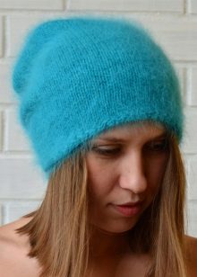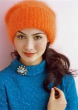 Mohair caps have a beautiful view. Due to the softness of the yarn, the product leaves no marks on the forehead and, accordingly, does not irritate the scalp. Designers have been offered volumetric hats from mohair, which are perfect for women of age of different ages. It is worth noting that the 70s of the last century enjoyed great demand for mohair caps.