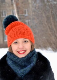 When choosing the color of hats, it is necessary that they are in harmony with the color of outerwear. At present, knitted products belong to full-fledged accessories, such as, for example, a bag. Therefore, for the cap there is a condition: the product should stand out in the image.