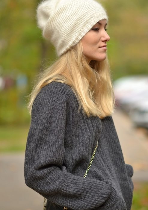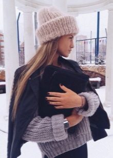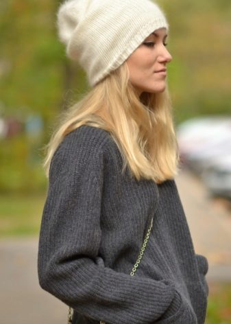 Gray yarn caps also turned into a separate trend. Special chic is the product made large and wide viscous, slightly voluminous.