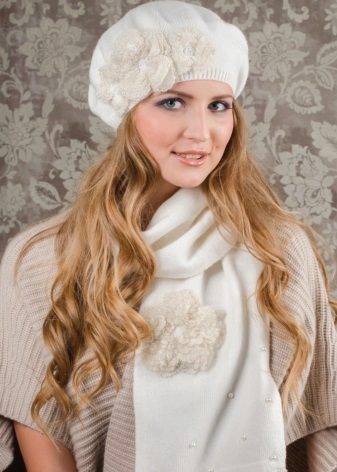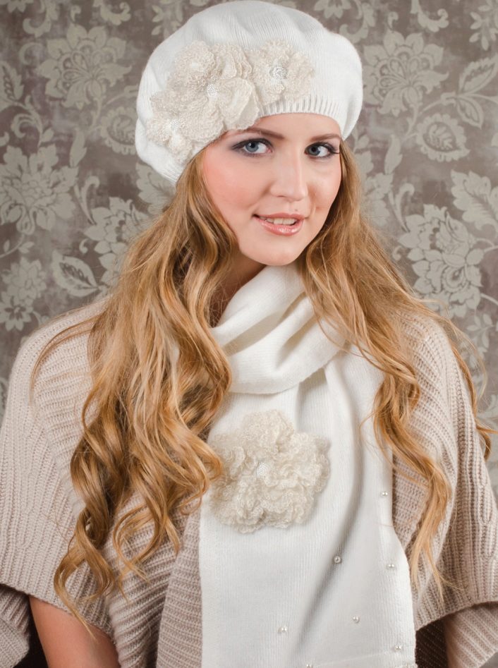 Helmets are very practical for winter, as they securely cover the head and neck. Have a very brutal look. Against their background, the beret looks feminine and elegant. Decorated with beads or stones.
