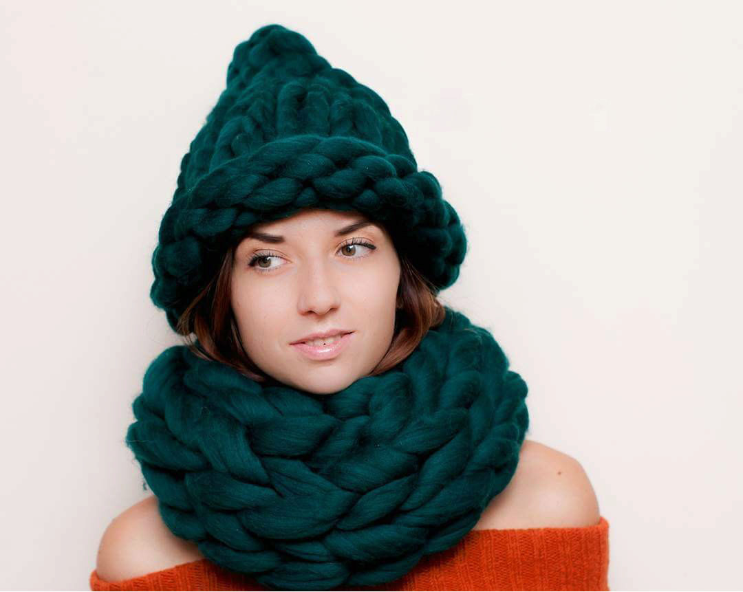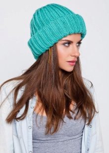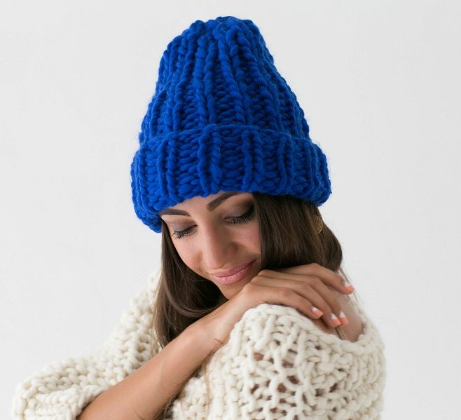 A thick hat made of thick yarn became popular several years ago. But even this season, this stylish accessory does not give up its position, continuing to delight its owners with its attractive and fashionable appearance.