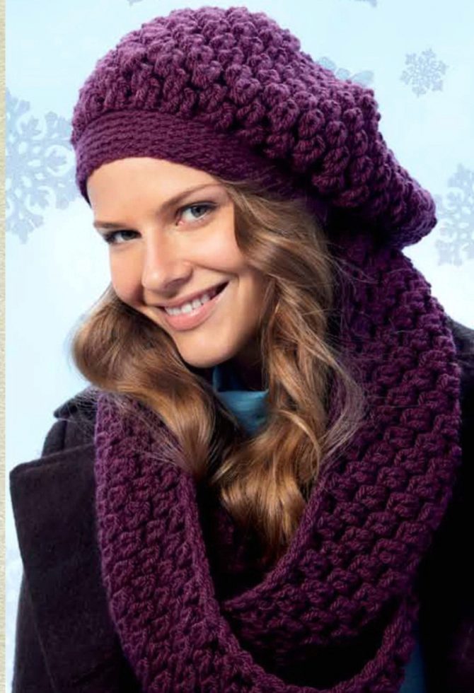 Bulk berets today are very relevant. Most often there are products of large binding in a deliberately casual style. They can have an interesting decor or a voluptuous pom-pom that looks funny and slightly playful. In such a beret you will be warm and cozy even in the most severe frost.