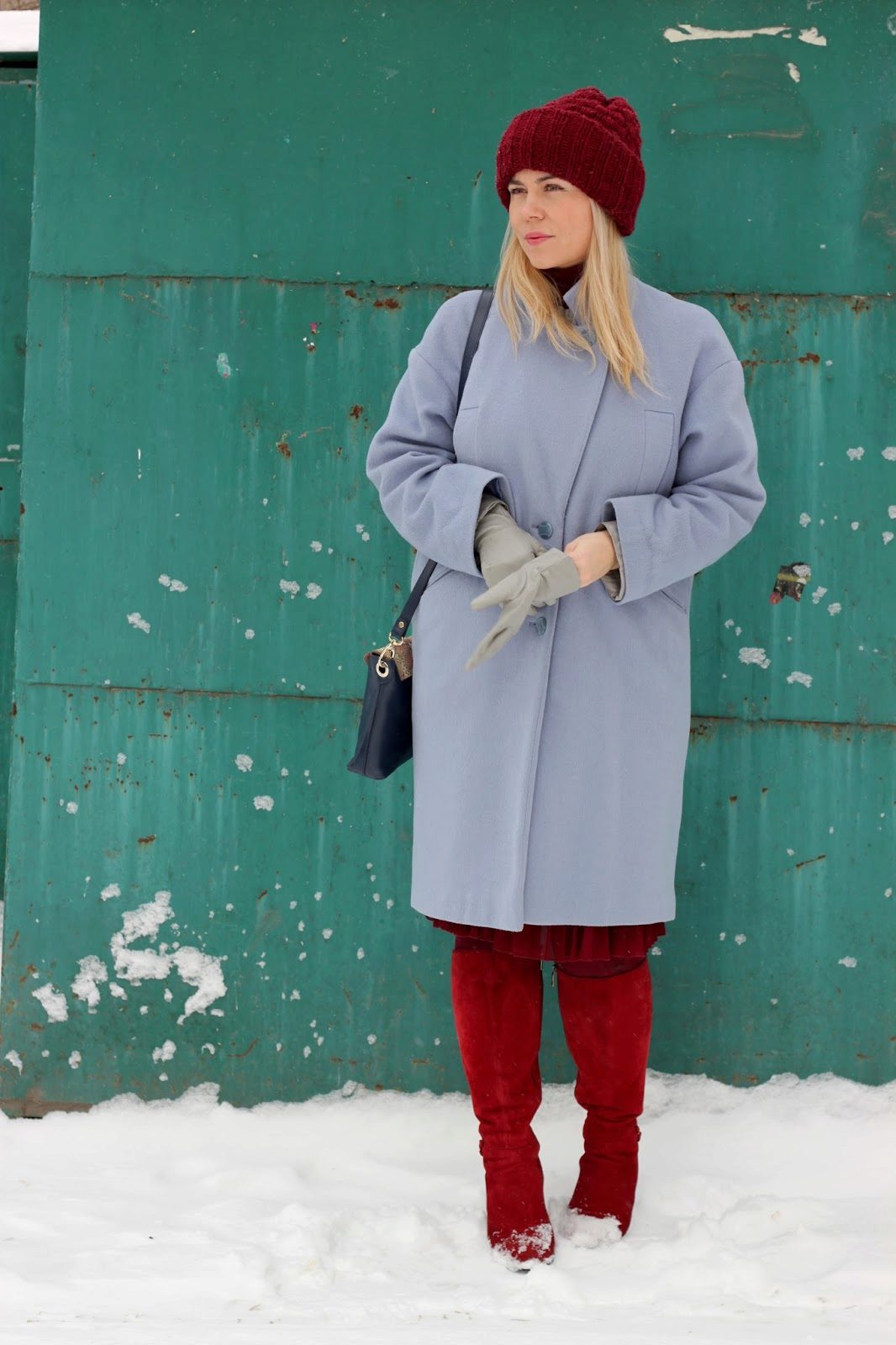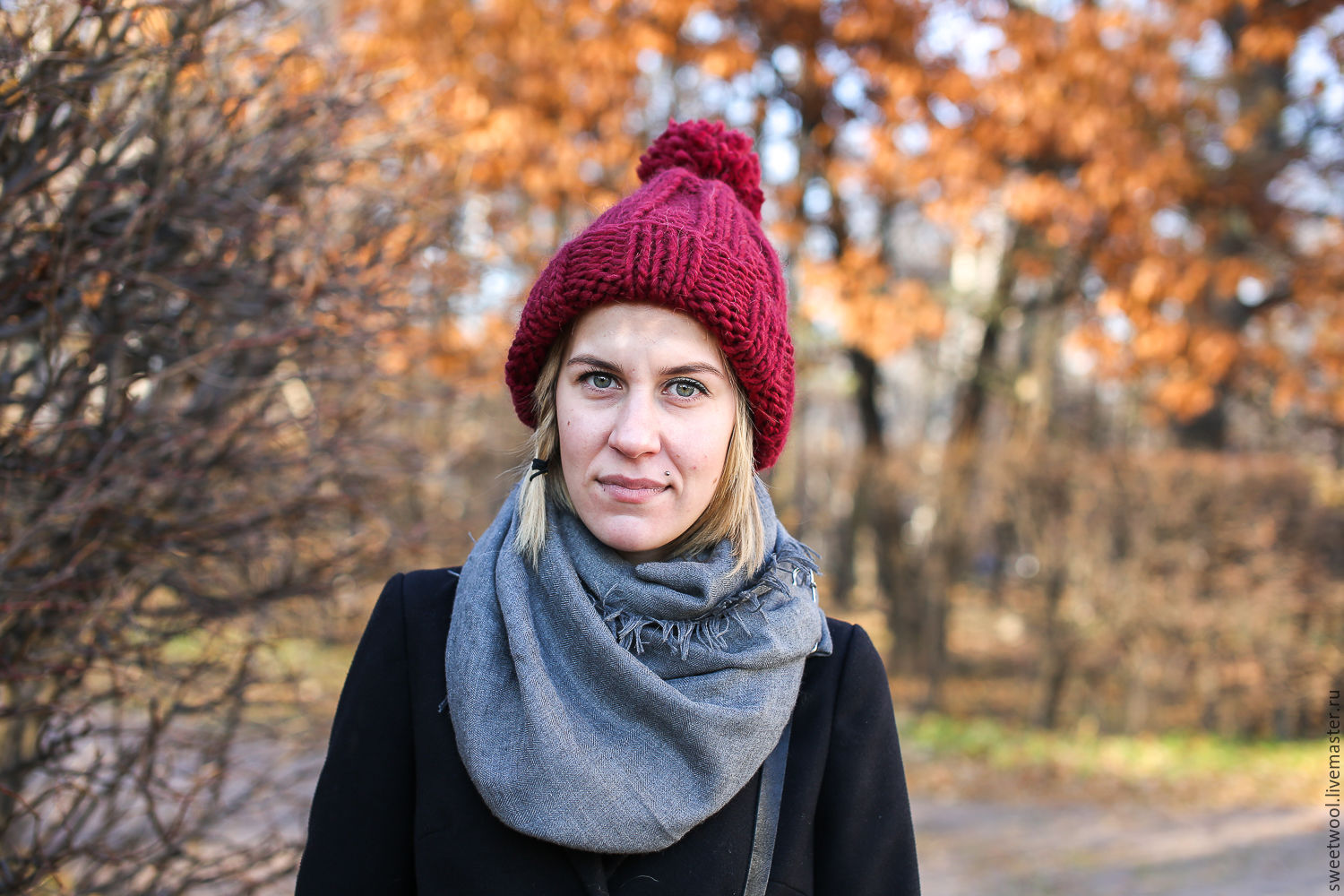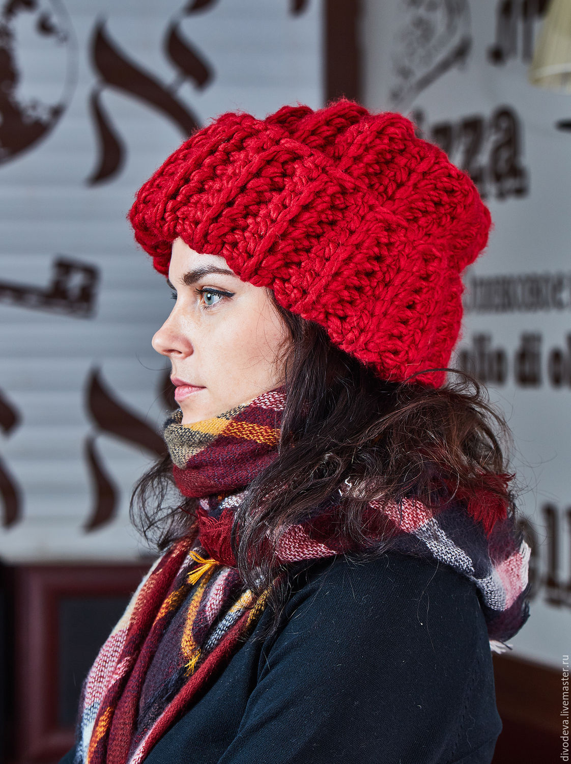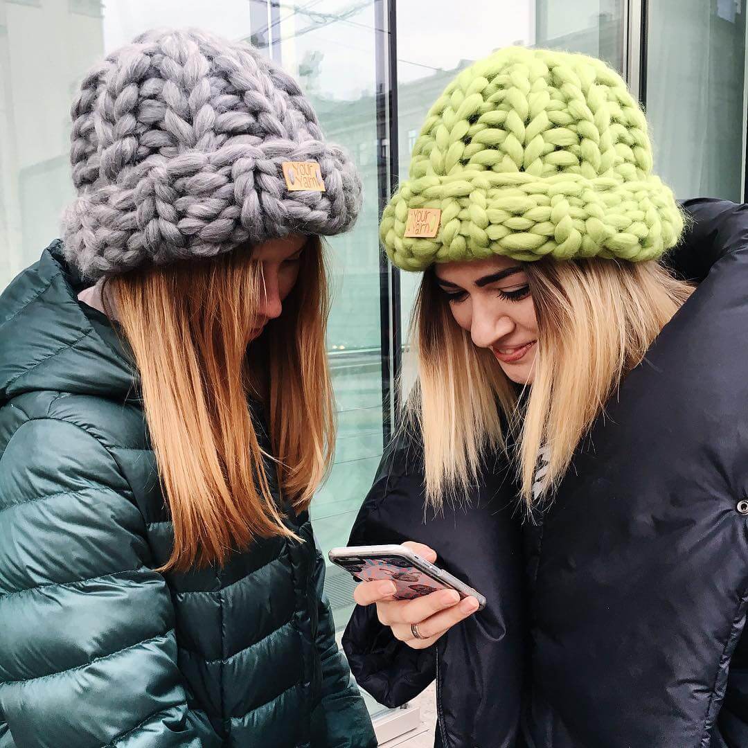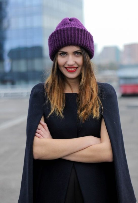 Different colors of thick yarn caps are popular. Vivid shades of wine are very popular. It can be purple, burgundy, blackberry, berry.