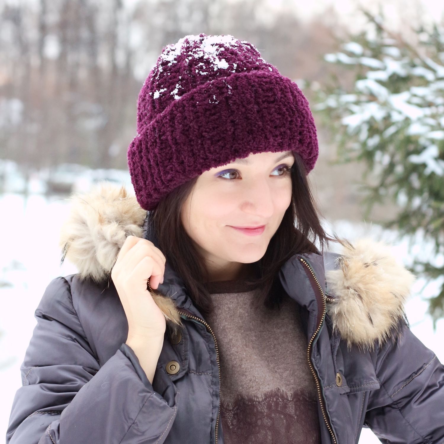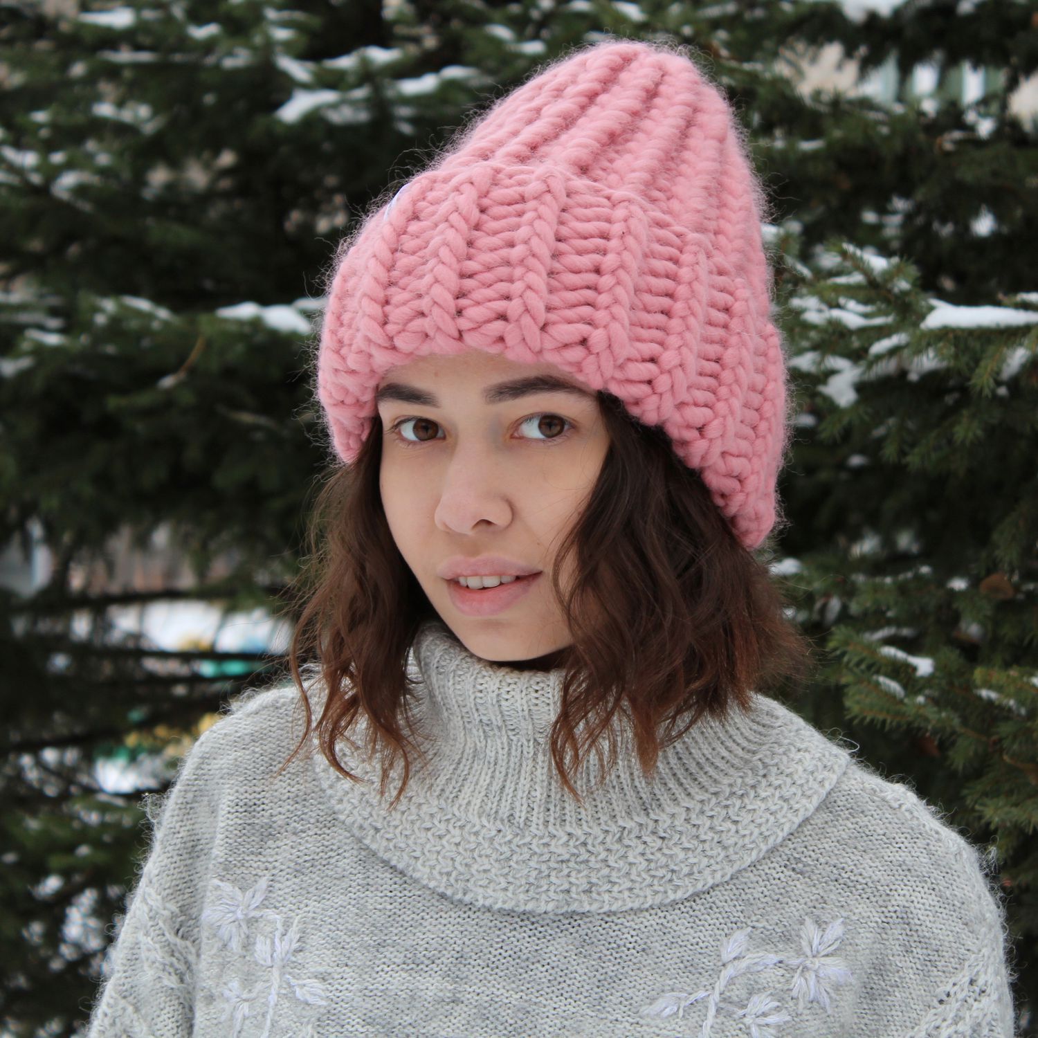 Unfortunately, a voluminous hat made of a thick one does not suit all girls. For thick faces, such hats are absolutely not suitable, so if you are a chubby girl, better choose another model for yourself.