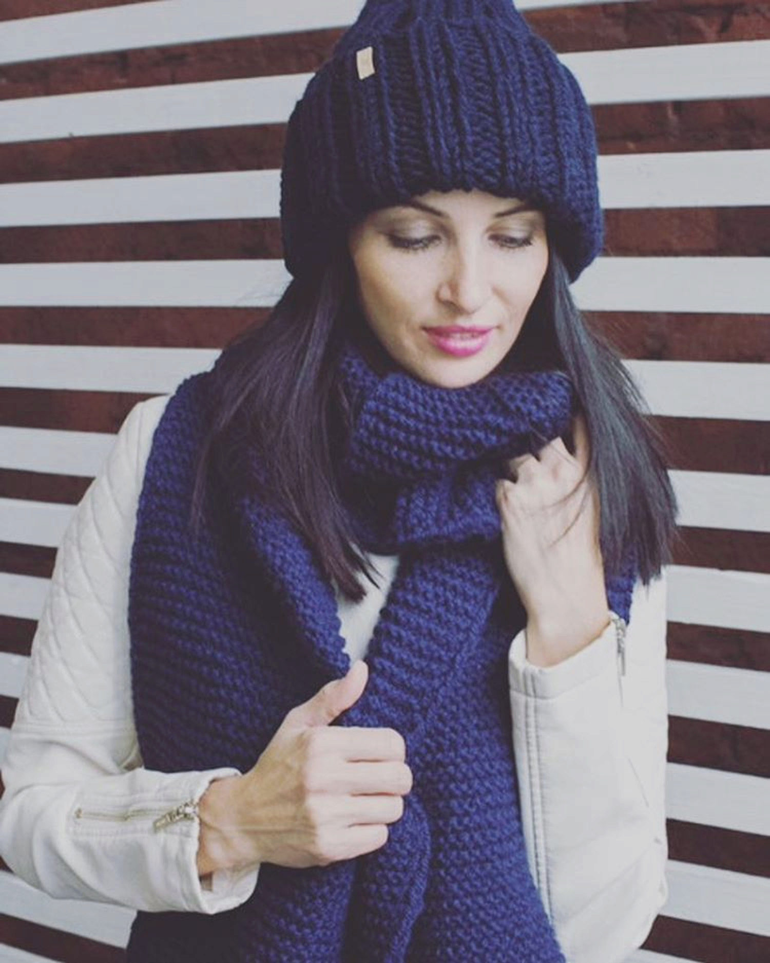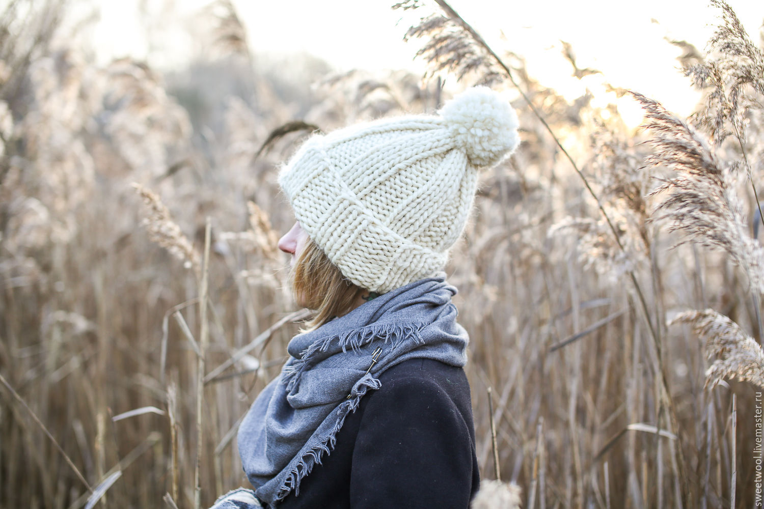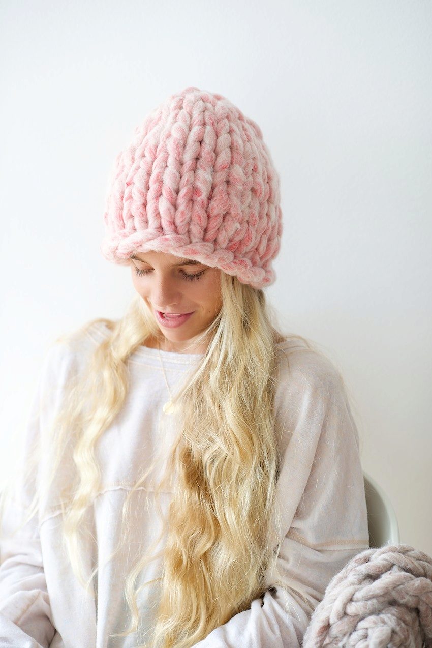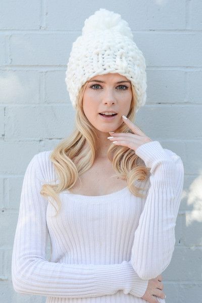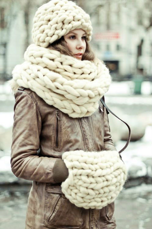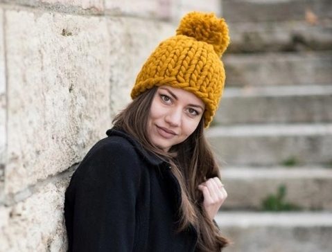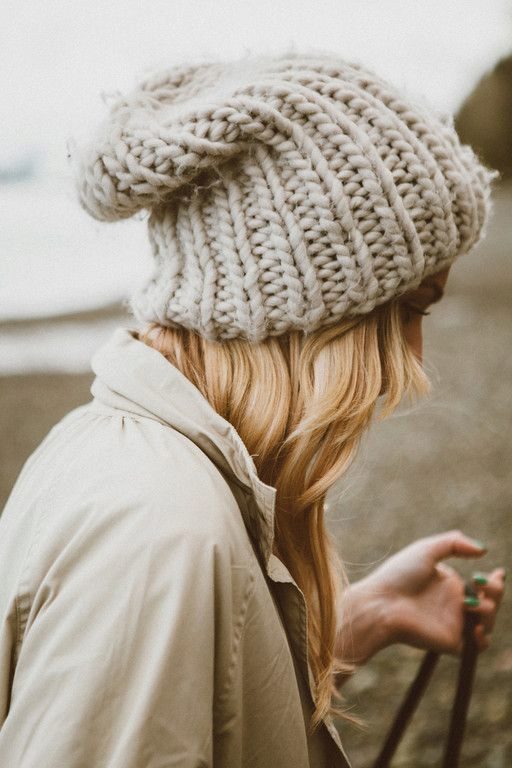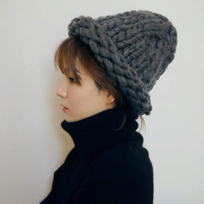 The thick yarn hat looks very stylish. The texture of the thick-knit product turns out to be a little rough, which is why this hat underlines the fragility and refinement of any girl as well as possible.