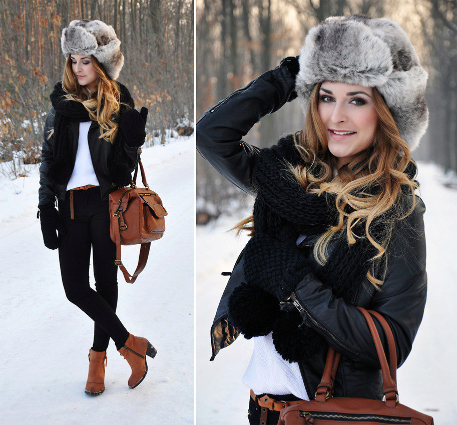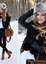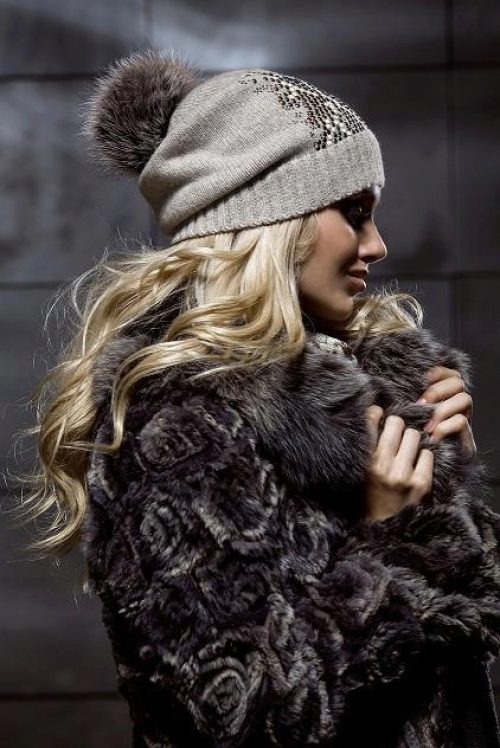Ladies who prefer a feminine, relaxed style can wear soft knitted hats, cute berets or fur hats. Hats with rhinestones or metal elements, fur ear-flaps with leather inserts, bright hats with pom-poms are suitable for daring ladies who wear glamor or casual style. Business women will wear a discreet color headdress with a minimum of additional elements. A classic fur hat or a medium-knitted hat will look good.