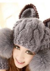 These are models of knitted fur hat with long “braids”, with fancy pompoms, these are hats-caps with bright inscriptions or print, or knitted hats that are “completed” with fur headphones.