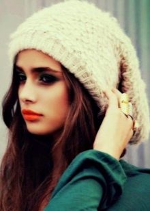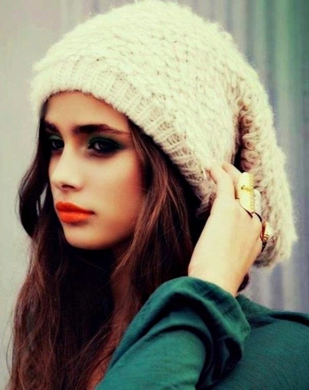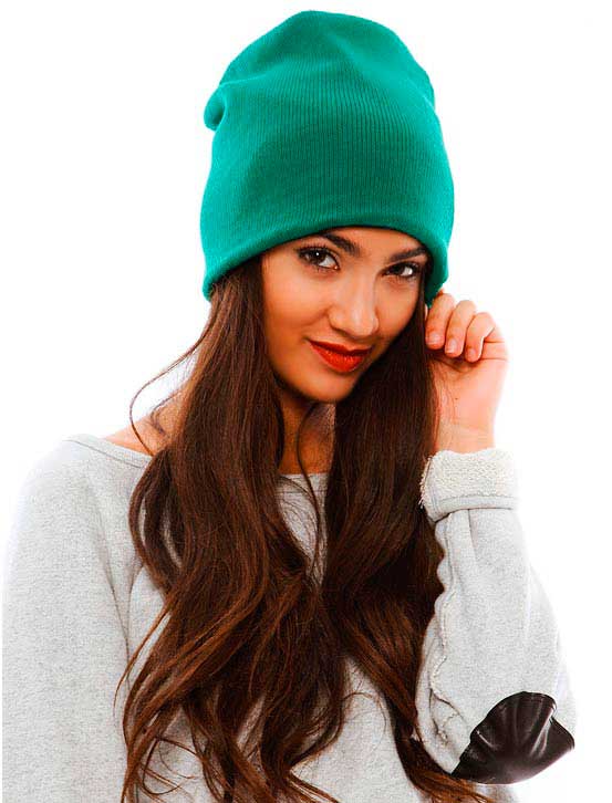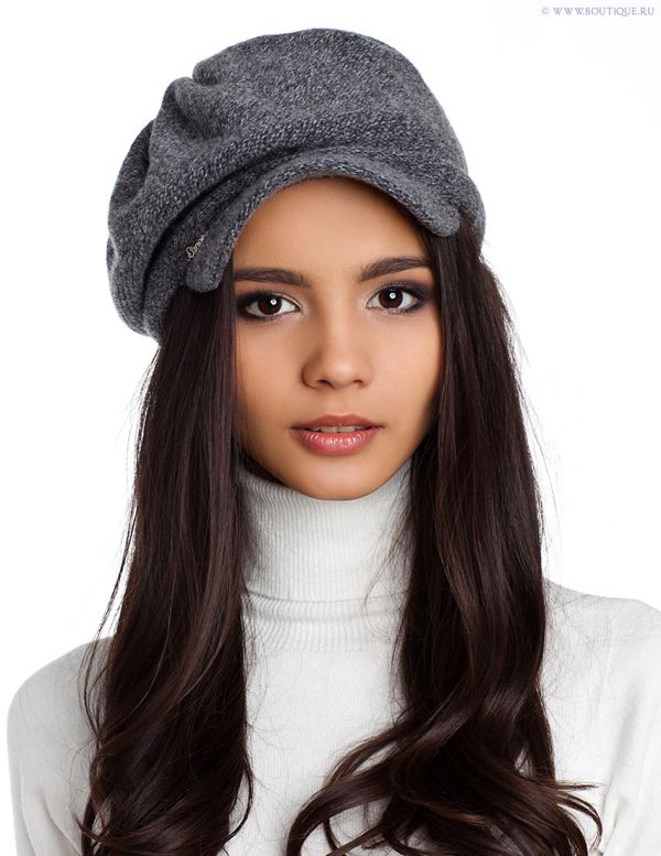 - Rectangular face. Women with a long face have a large forehead and prominent chin. In this case it is better to pick up hats with a lapel that can be pulled deep onto the forehead. Soft berets that need to be worn so that part of the forehead is covered also mask the rectangle well, a small cap with a fixed top will successfully perform the same role.