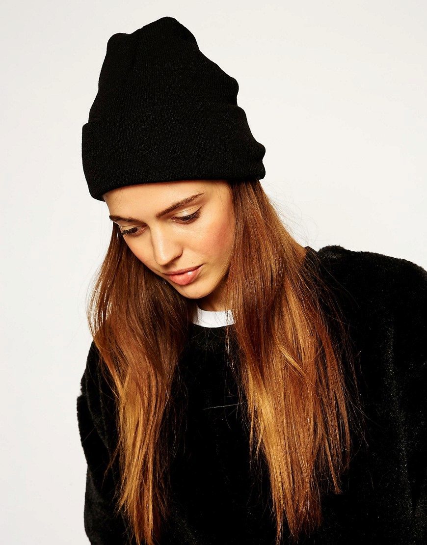 - Brown-haired There are all the colors of chocolate, as well as dark gray, dark blue and black hats, dark beige hats, ocher and warm milk tones.
