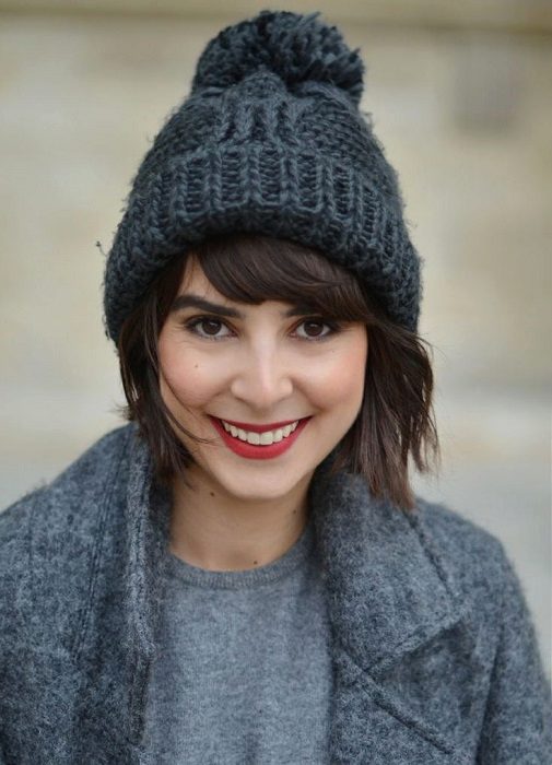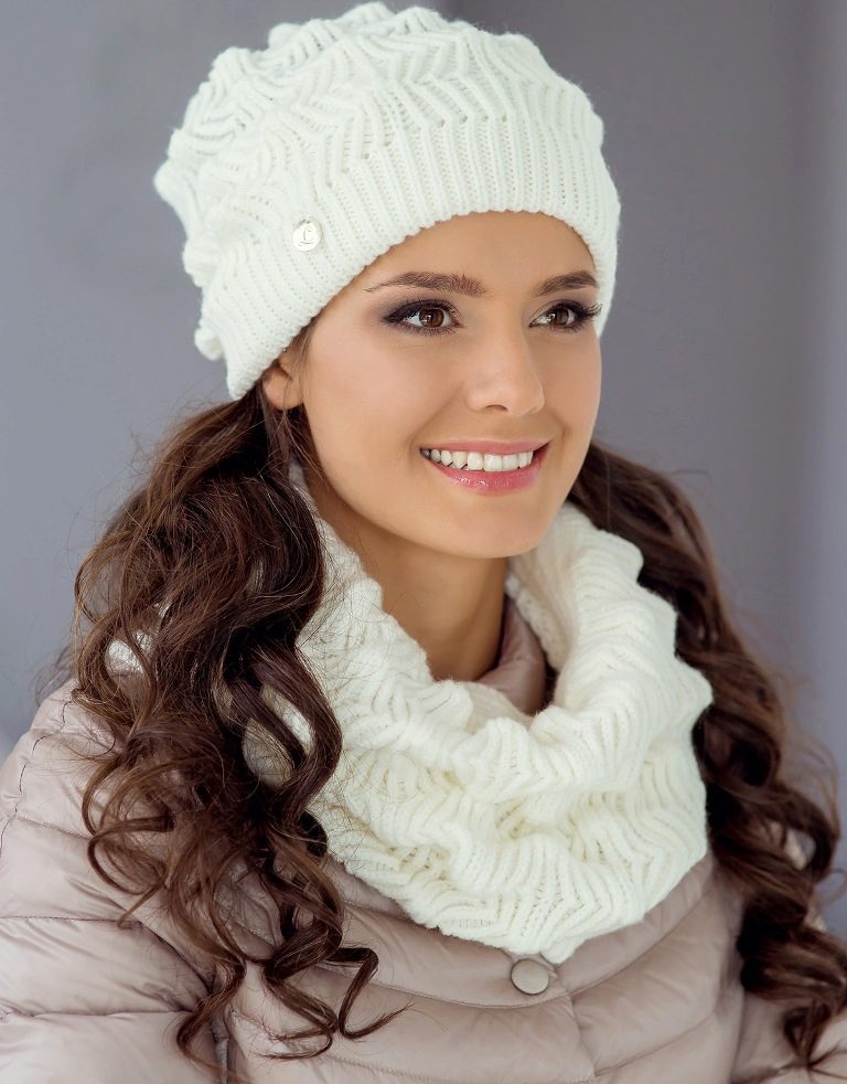 Girls with long straight hair go berets large or medium-knit, bowler hats or cloche caps, and hats with earflaps. Young ladies with curly curls below the neck will benefit if they get a knitted volumetric cap, a modest beret or a hat with the fields “looking” down.