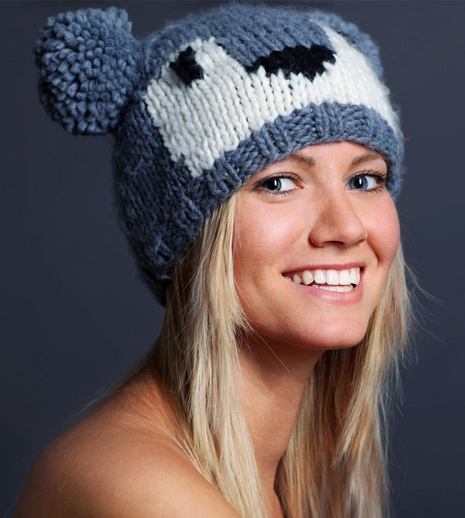 - Round face. The owners of this form of the face cheekbones are the widest place, and the width of the face is not too greater than its length. To visually fix this, you can wear hats with visors or headdresses of large knitting and asymmetric cut. Also good caps, pulling the oval face, berets, stretched on one ear and soft, slightly shapeless hats with a tall, elongated crown.