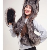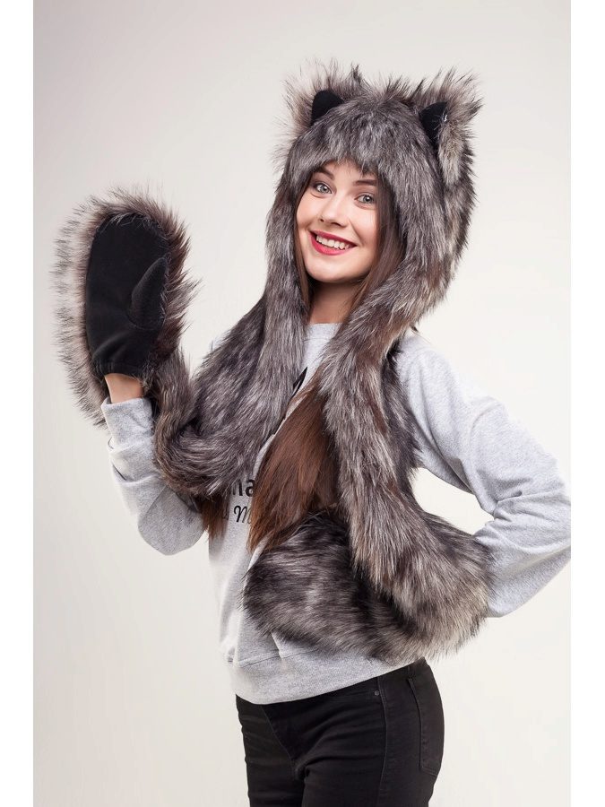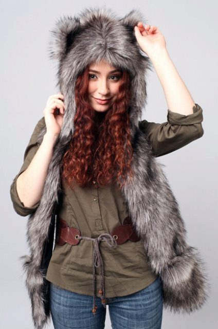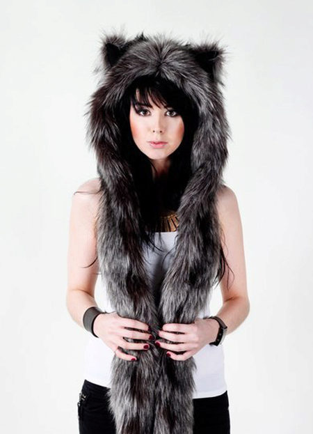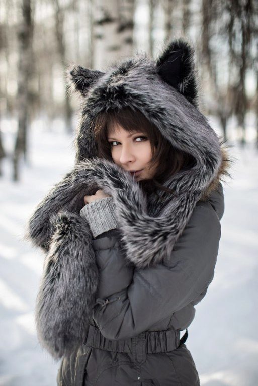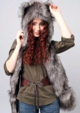 The headdress made of wolf fur looks very stylish and unusual. Thick and long pile retains heat well, such a hat, among other things, is rarely seen, and it looks very original. Particularly good are earflaps or tall wolf turbans, as an accessory to which a wolf's tail acts.