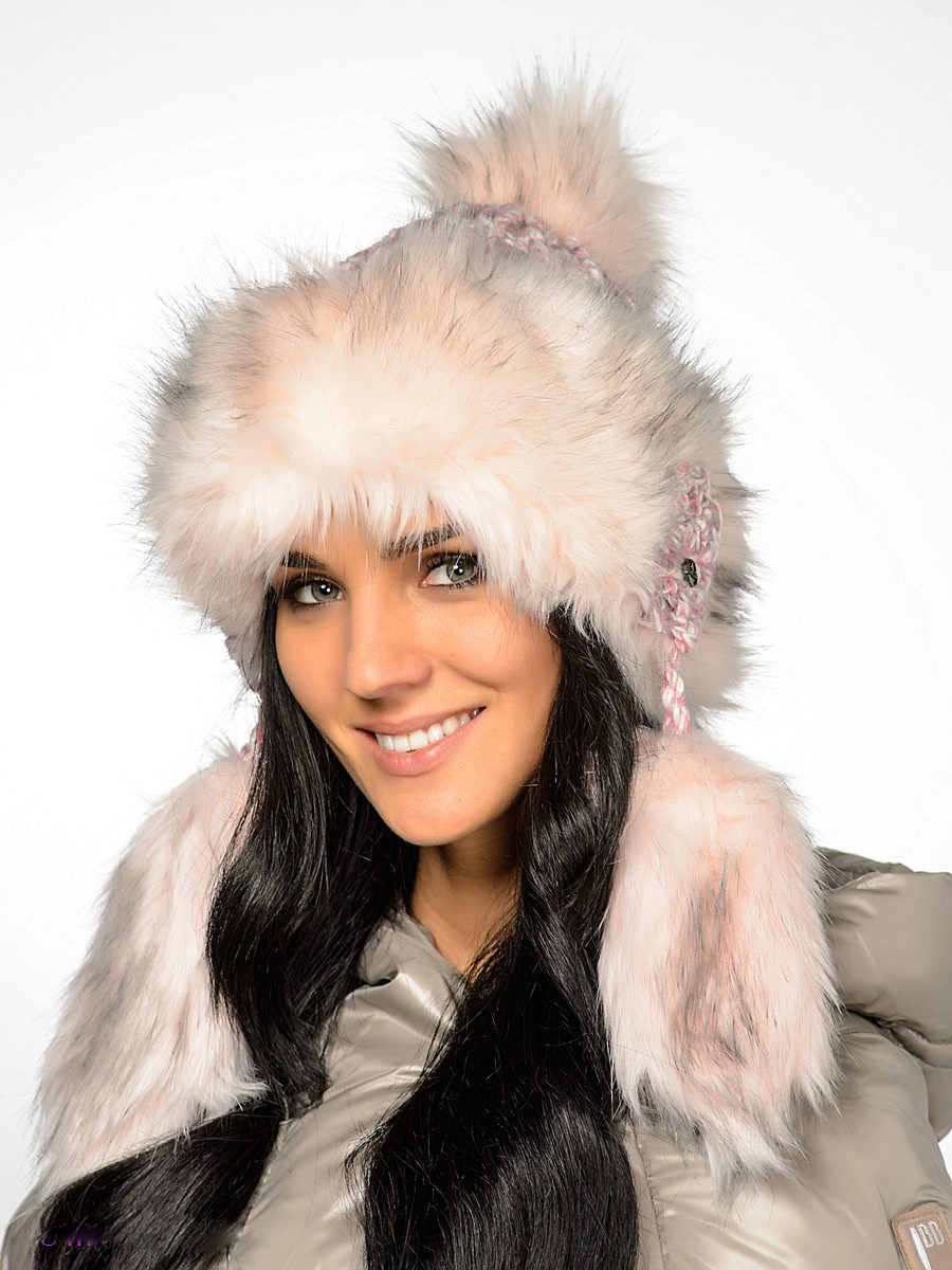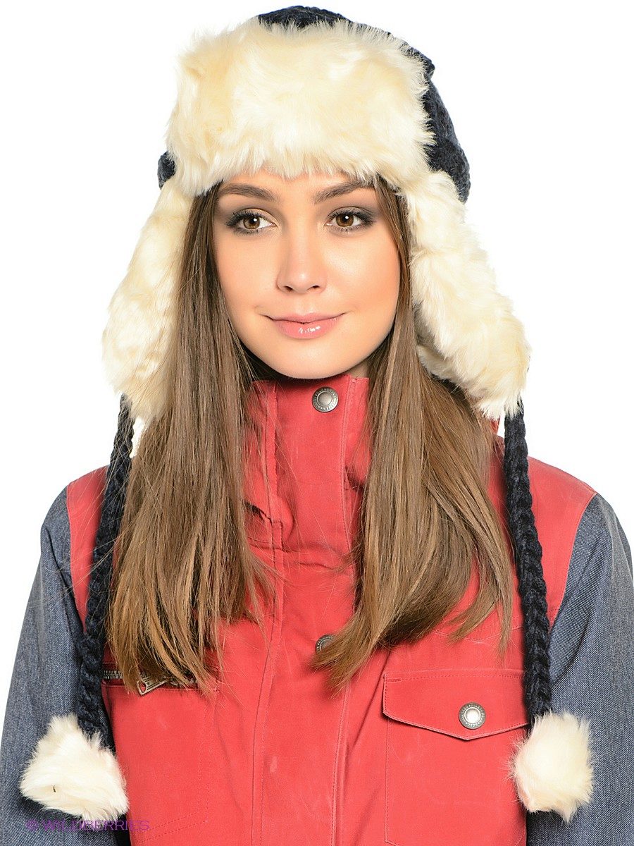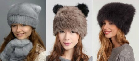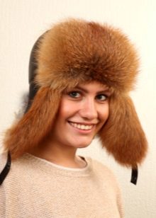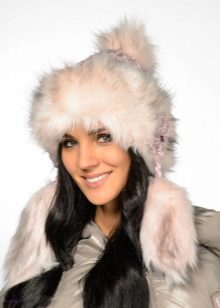 - Hat with ear flaps. A model that never goes out of style! Warm and practical, can be of different styles - from very voluminous, from fluffy fur, to compact, from smooth or sheared fur. This model looks very good on young girls.