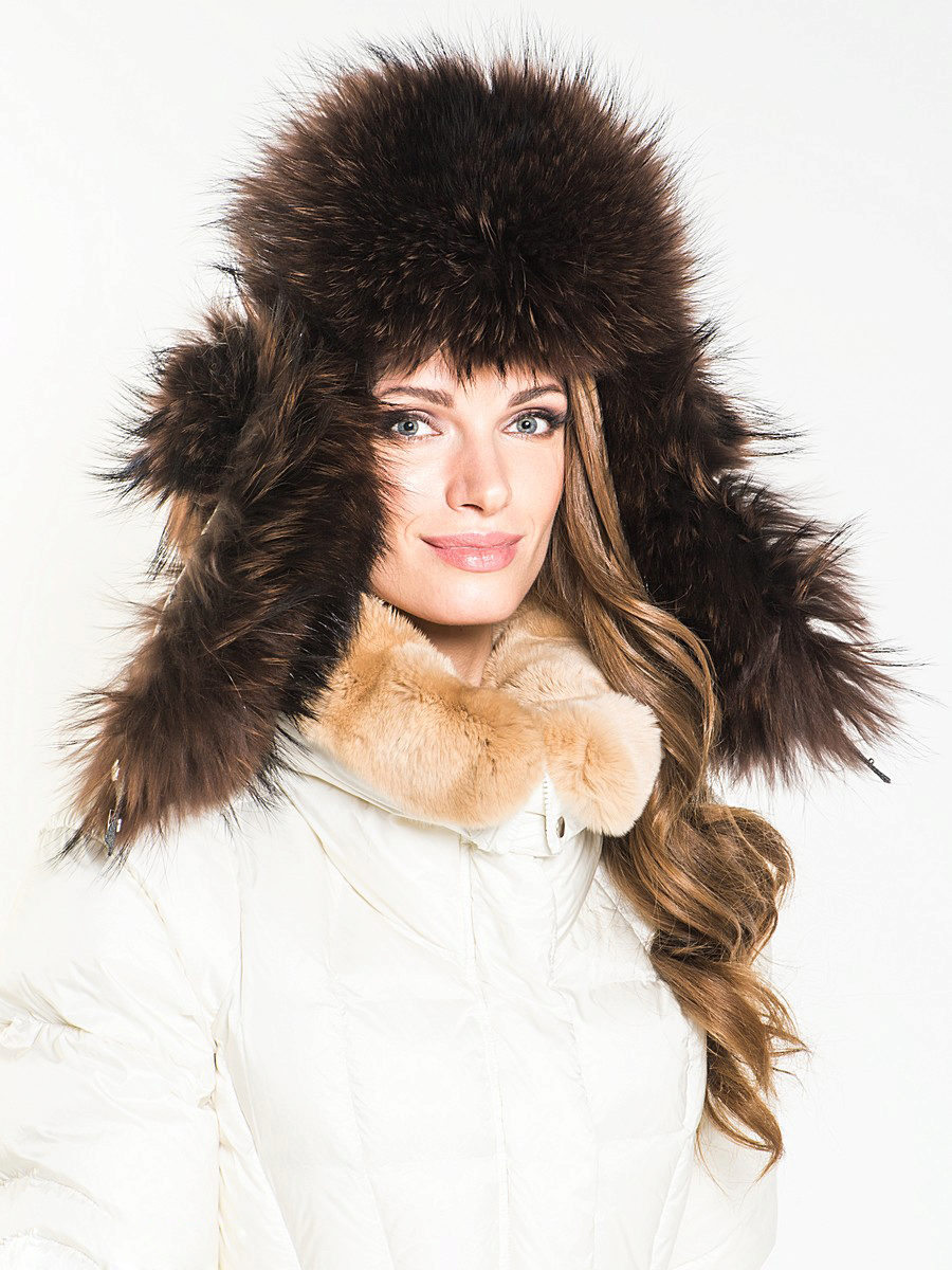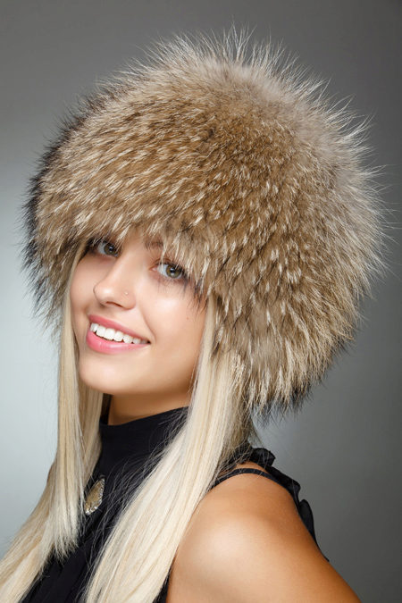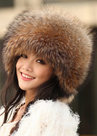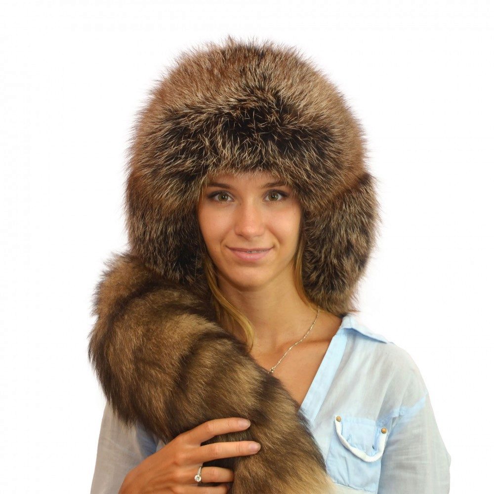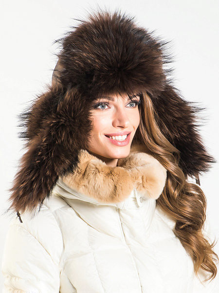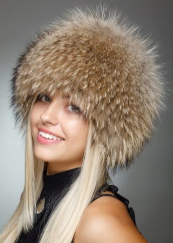 The fur of the raccoon has a very dense undercoat and fluffy fur, thanks to which the raccoon hat is not blown and it is impossible to freeze in it. The skins of this animal are rarely painted, as the raccoon has a very beautiful natural color, due to which the headdress looks rich and expensive.