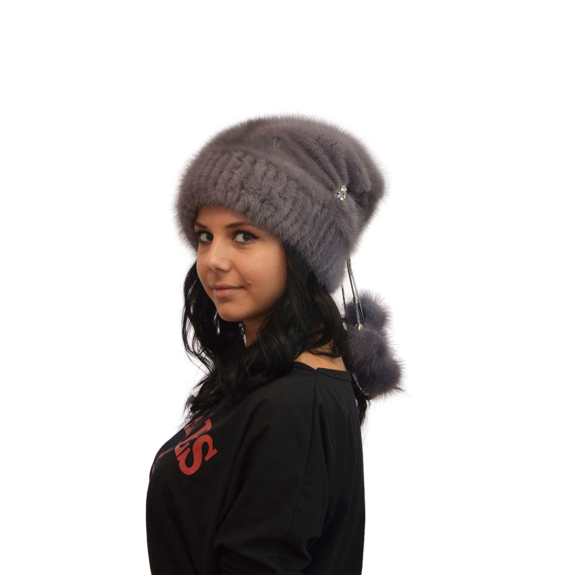 For owners of square and rectangular faces, the best option would be soft fluffy hats without large decor.