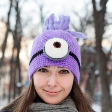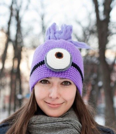 - Violet - the color on which the yellow minion looks great, as if descended from the screen; This hat looks very stylish, but at the same time, modern and cute;