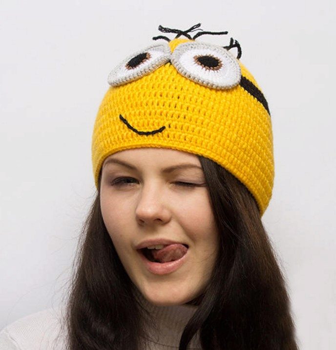The most popular style of minion caps are the usual round knitted hats. You should choose only those products that do not shake, do not leave traces on the forehead, do not cause allergies. In addition, the product must be well-made, so that it does not break from one awkward movement. Threads and seams should not stick up and climb into the eyes.