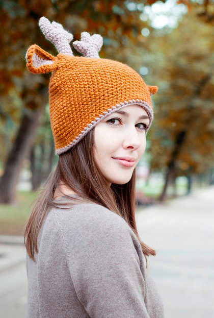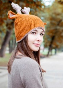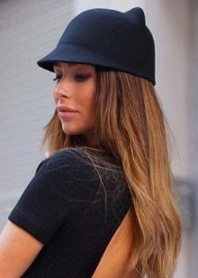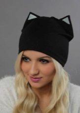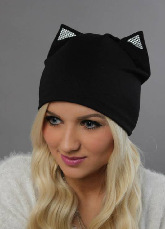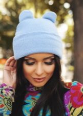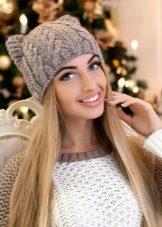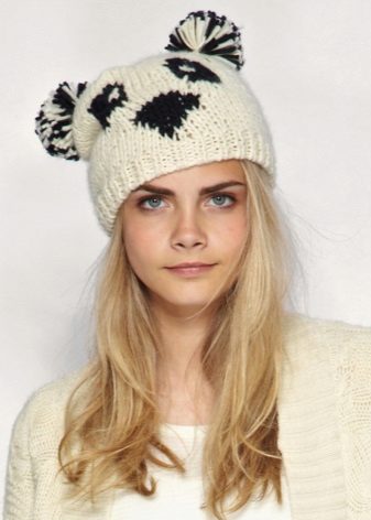 Girls love funny hats with animal earsmostly feline and bearish-panda. Such ears decorate not only knitted wool hats, but also super fashionable felt caps-jockeys. Lovers of beautiful complex styling often prefer a cap-scarf, under it the hairstyle is not pressed as much as under an ordinary cap, but such an accessory looks quite fashionable and modern and feminine.