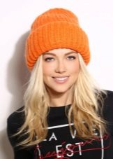 In a fashion knitted hats with a turn. The volume cap, connected with an English eraser, is a hit of the season A double cuff will add volume and originality to the headdress, you’ll get a hat in the style of takori. Moreover, such a model can be tied independently on the needles (for example, from mohair, angora or cashmere) according to the principle of decreasing loops, the basis for it is a long stocking.