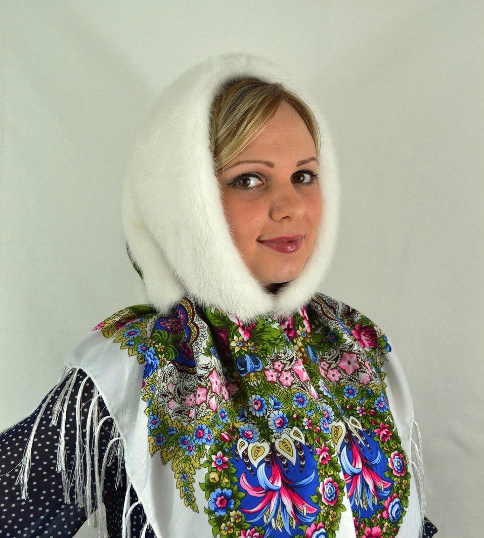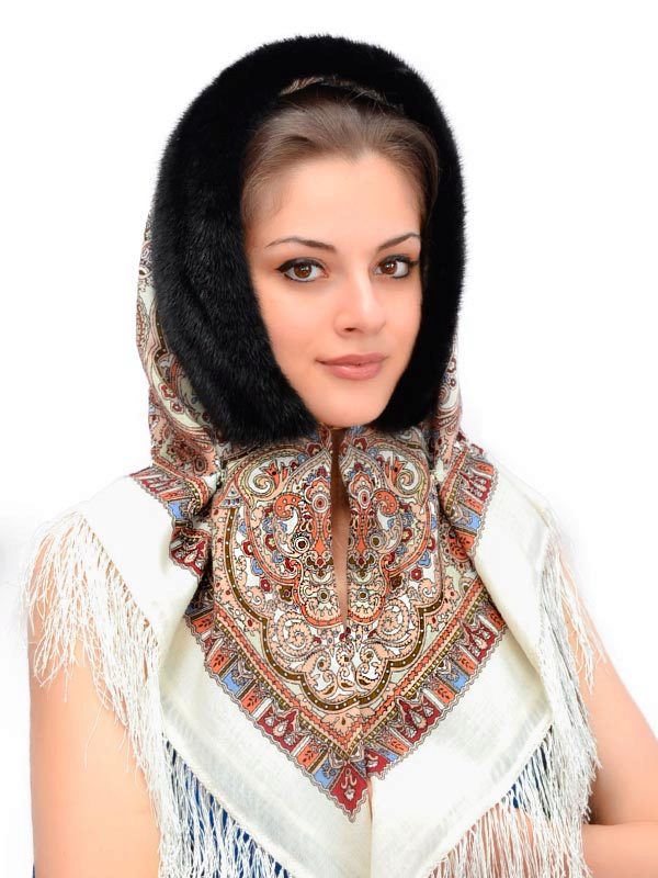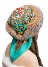 A beautiful headscarf trimmed with snow-white mink will become a true decoration of any romantic girl. Such a universal headdress can be worn as a hat, securing it under the chin, and you can, like a regular tippet, throwing it over your shoulders.