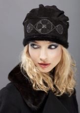 Suede and leather are still used to sew topical caps. And the headdress can be sewn of these materials completely, and can only be a separate leather or suede inserts.