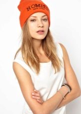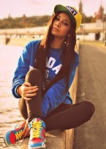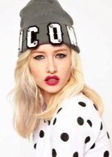 Large inscriptions adorn youth sports and urban models. Inscriptions are located on the side or front of the forehead. Often the letters are used in a contrasting color, embroidered with stones and rhinestones.