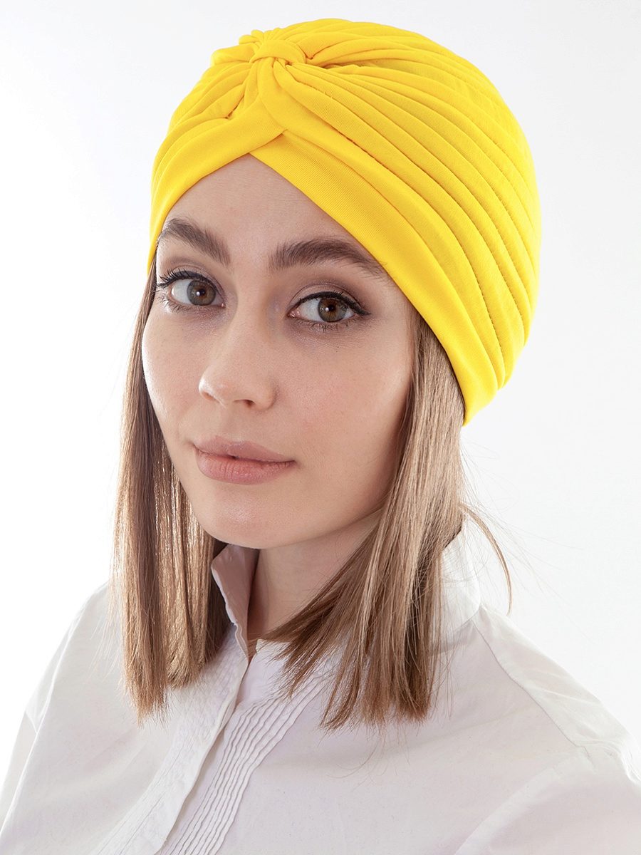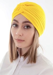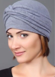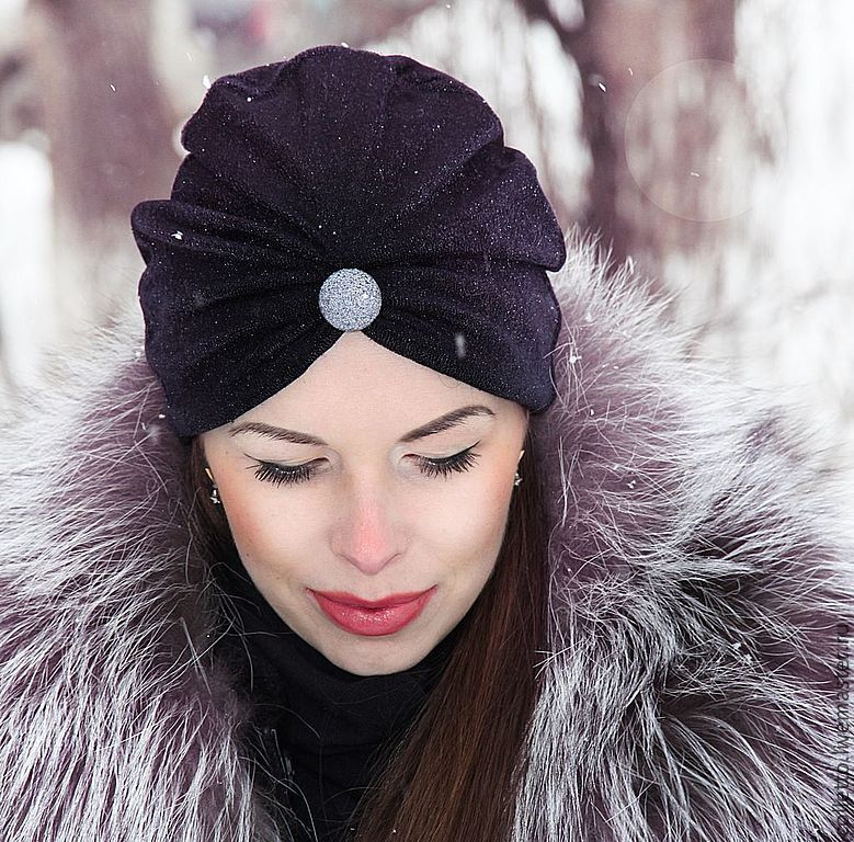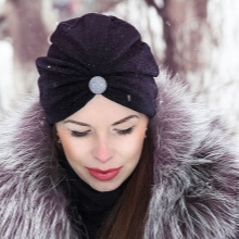 A turban or a turban will not go unnoticed this season. Particularly attractive such hats look at girls or women with delicate facial features. Such a headdress is also appreciated for the fact that it can be decorated with a favorite brooch. If desired, the turban can be built on the head independently of the piece of cloth you like, and the turban is easy to sew or knit.