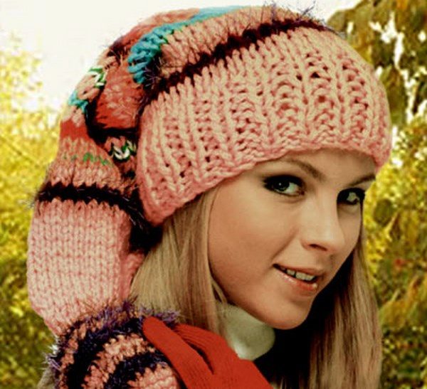 Knitted hats are comfortable, they are warm, they fit well on any shape of the head and face. One of the most popular models in the current season is a hat-bini. Neat elongated cap looks very interesting, it is suitable for fashionable women of any age. Bini with a lowered tule (“stocking”) is one of the main fashion trends of the season.