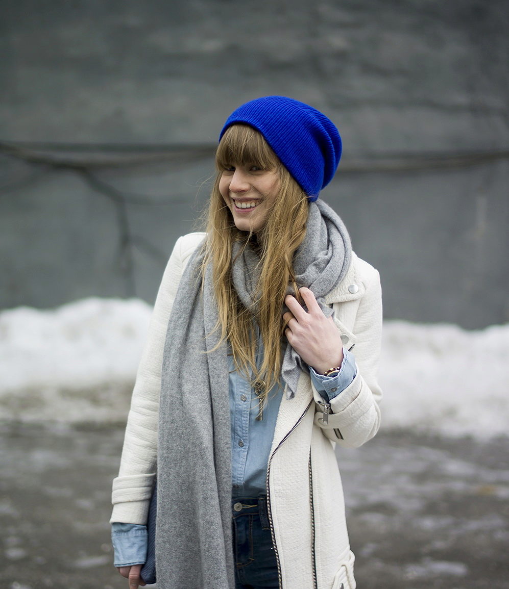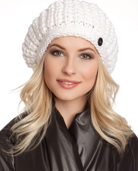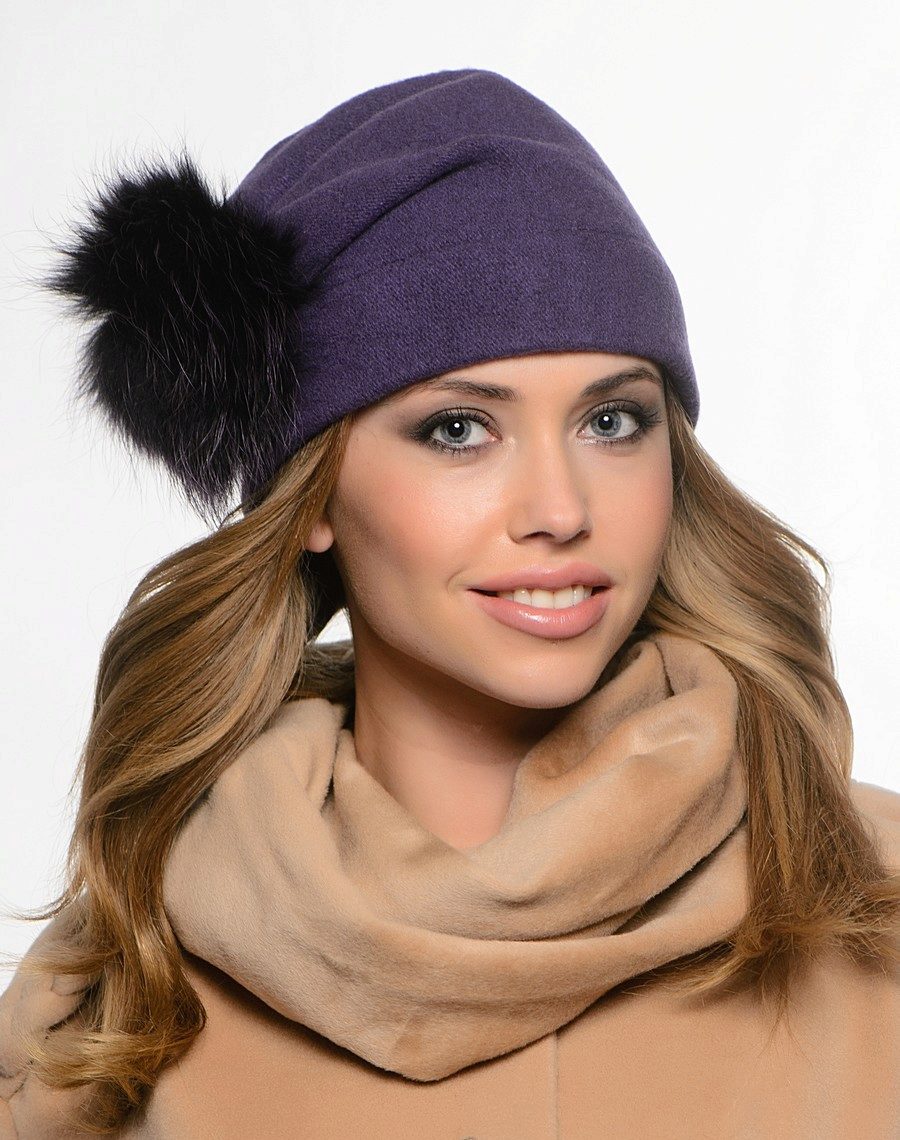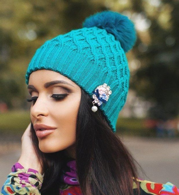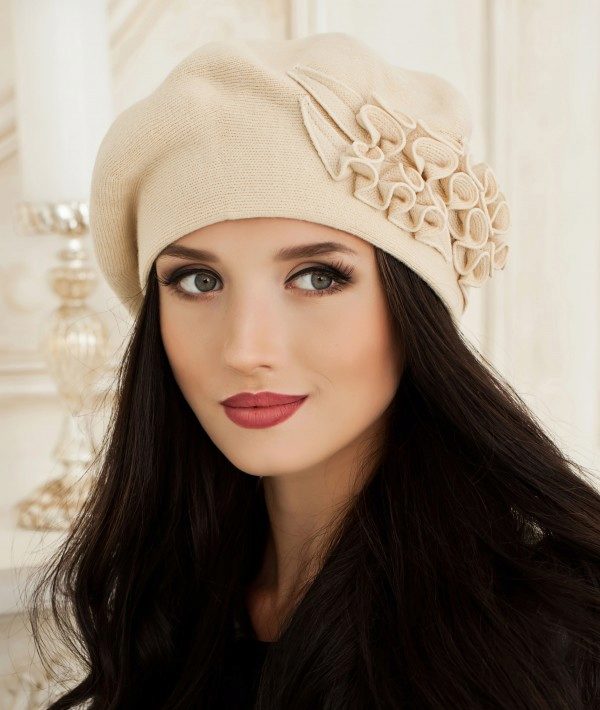 Lightweight knitted cotton or viscose hats are always in fashion, but they are good for late spring or early autumn, in winter it is preferable to wear wool hats (angora, mohair, merino, cashmere) or furs (mink, sable, marten, chinchilla, arctic fox, fox).