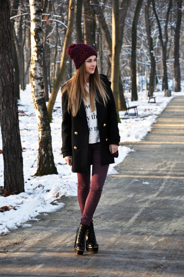 - Hats, tight knitted hats, traditional berets and Russian-style fur hats are combined with a classic coat.