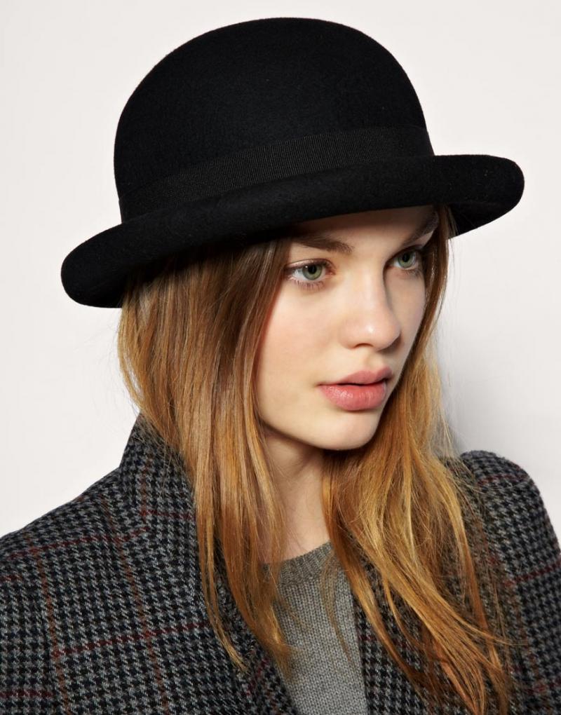 If you like to wear loose long straightened hair, then you will go hats with a lapel, as well as berets and wide-brimmed hats. If you have curly hair, you can give preference to tight caps and caps with lowered fields. With short haircuts, we recommend wearing sports hats, caps, fedora hats, bowlers and bells, as well as fur hats.