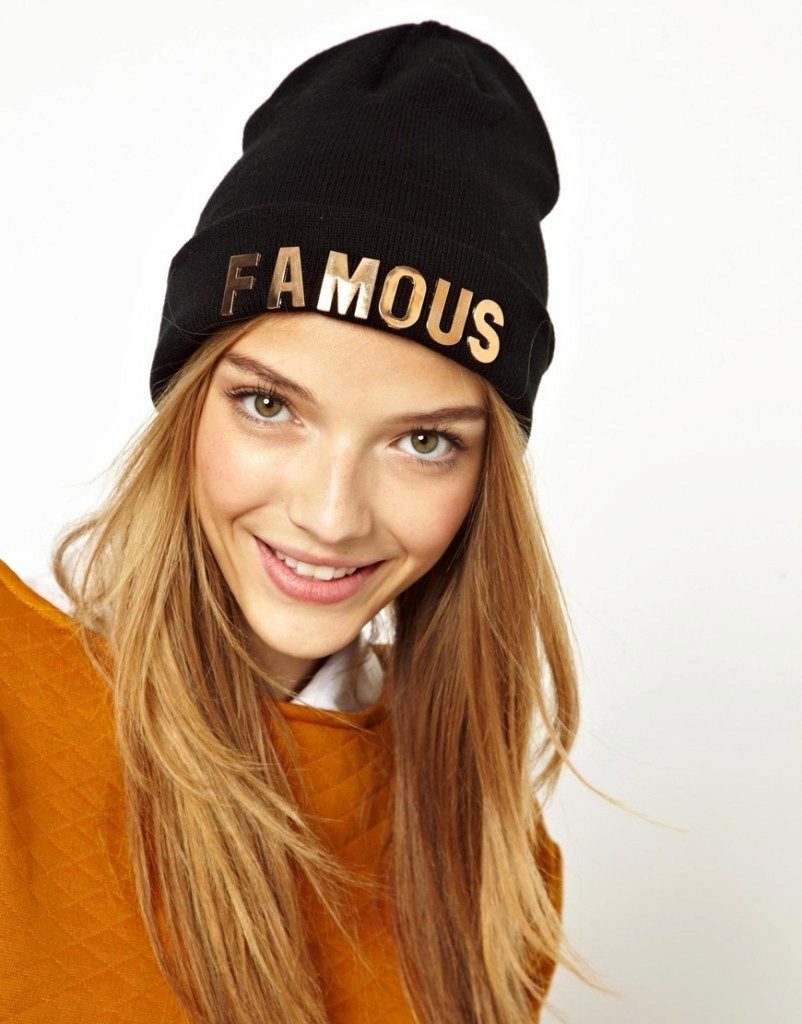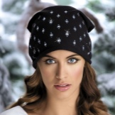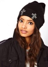 Recently, elongated hats called “bini” have become widespread. If earlier they were worn only with inflated jackets or quilted ski suits, today they are combined with any way, even classical. Often bini-hats are designed to support the glamorous image of their owner, they are decorated with large shiny inscriptions, embroidery, rhinestones, stones and sequins.