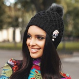 Among the favorites of the winter season - black, white, gray, brown and blue hats. Often in one product combines several classic colors, for example, black with white, brown with beige or blue with gray. For lovers of pastel shades beige, cream, mustard, herbal, blue-gray, powder-pink, peach and lilac headwear are available. Anyone who prefers a bright image can choose a stylish hat of bright red, cyclamen, orange, turquoise, emerald, burgundy colors or combining several similar saturated colors for the winter.