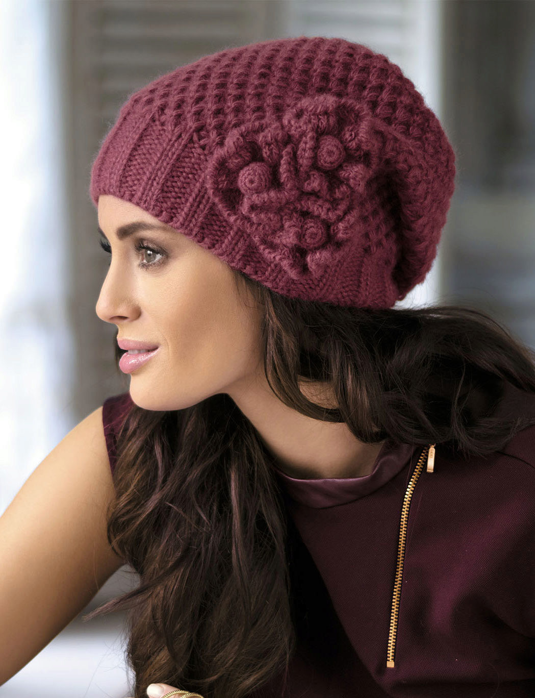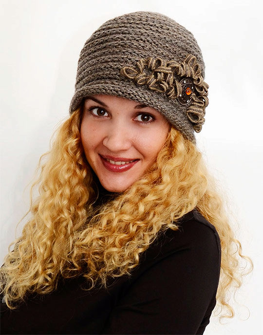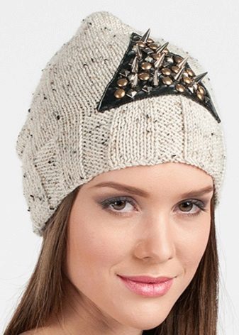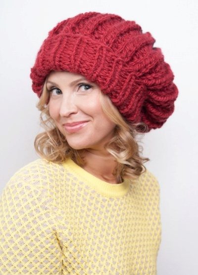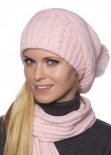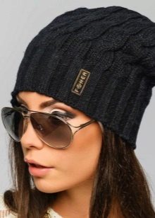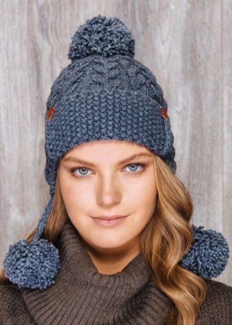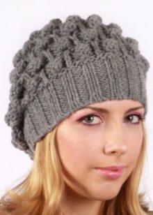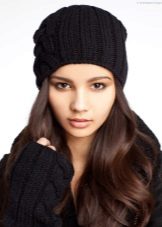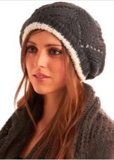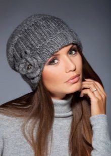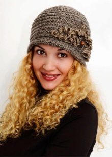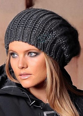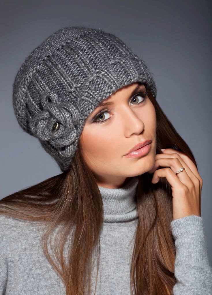 For winter, it is better to choose hats with a large binding. The most popular type is the English gum. Hats connected in this way have not lost their relevance for many decades. But if earlier such products were knitted exclusively by hand on the needles, then today machine styling for hand (“grandma”) knitting is especially common. “Knitted” embossed bumps, pigtails, flagella and braids are more fashionable than ever before.