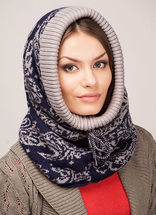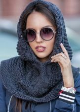 Colored hoods - Another fashionable trend in the production of unusual winter hats. By their appearance, they resemble hoods, are made of thick fabric, knitwear, leather, suede or fur. Often the production uses a combination of different materials in one product.