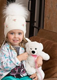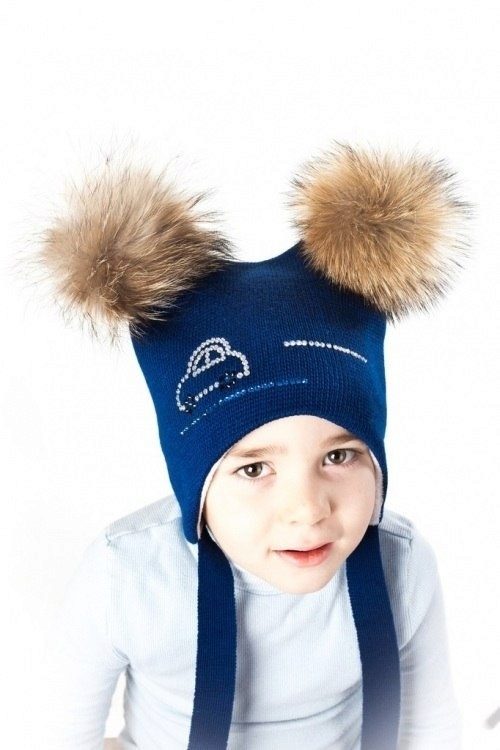 Moving preschoolers do not need to wear hats in two layers, but, nevertheless, it is necessary to ensure that the ears are always covered. For this headdress must be measured before purchase. It is good if the winter hat has strings or at least a deep landing. Little dandies can treat themselves to a variety of winter hats: hats with pompoms made of fluffy natural fur, stone trimming, rhinestones, floral embroideries, themed appliqués.