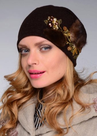 Women over 40 would like to advise not to ignore classic hats: berets (classic French and self-knitted), hats (with wide and medium fields) and caps shestiklinki (made of leather, finely fleece wool or short noble fur). A turban hat is also perfect for adult fashionable women, it can be decorated with a large brooch that matches the style of the rest of the jewelry. Caps made of expensive fur will fall in favor of women over 50, who follow fashion.