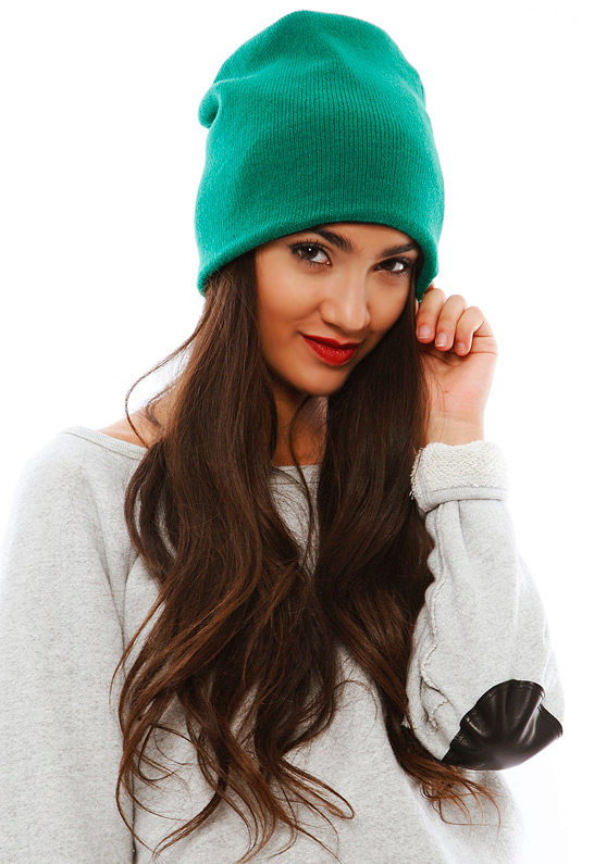 Enlarged headgear, seeming to several sizes more than necessary, due to the bulk knitting, thick yarn or double lapel are at the peak of the current season's fashion. The gold or silver lurex thread introduced into the yarn will add a fresh touch to the image. It is also worth paying attention to voluminous knitted berets and caps with eight-blades with neat visors.