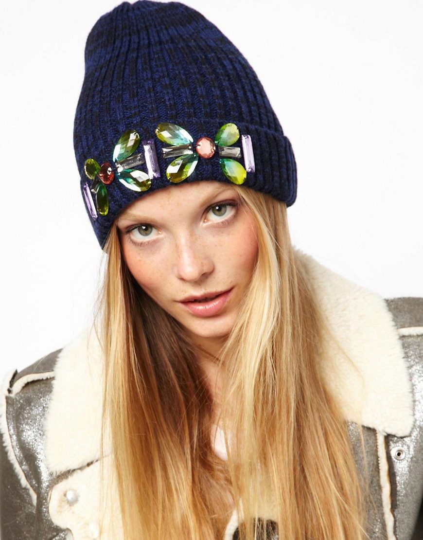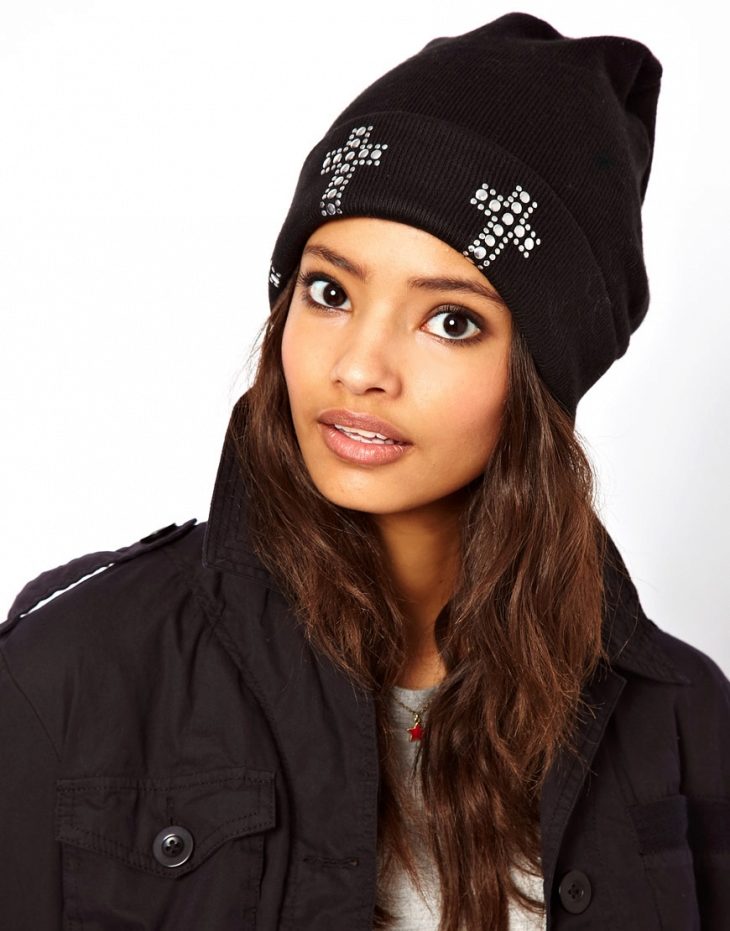 Caps with embroidery and appliqué - This is a real hit of the current winter. The motifs are very diverse, mostly flowers, funny animal faces, images of glasses and interesting graphic drawings.