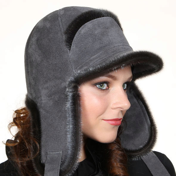 Suede and leather still relevant for sewing winter hats. And the headdress can be sewn of these materials completely, and can only be a separate leather or suede inserts. Looks great combination of leather and fur.