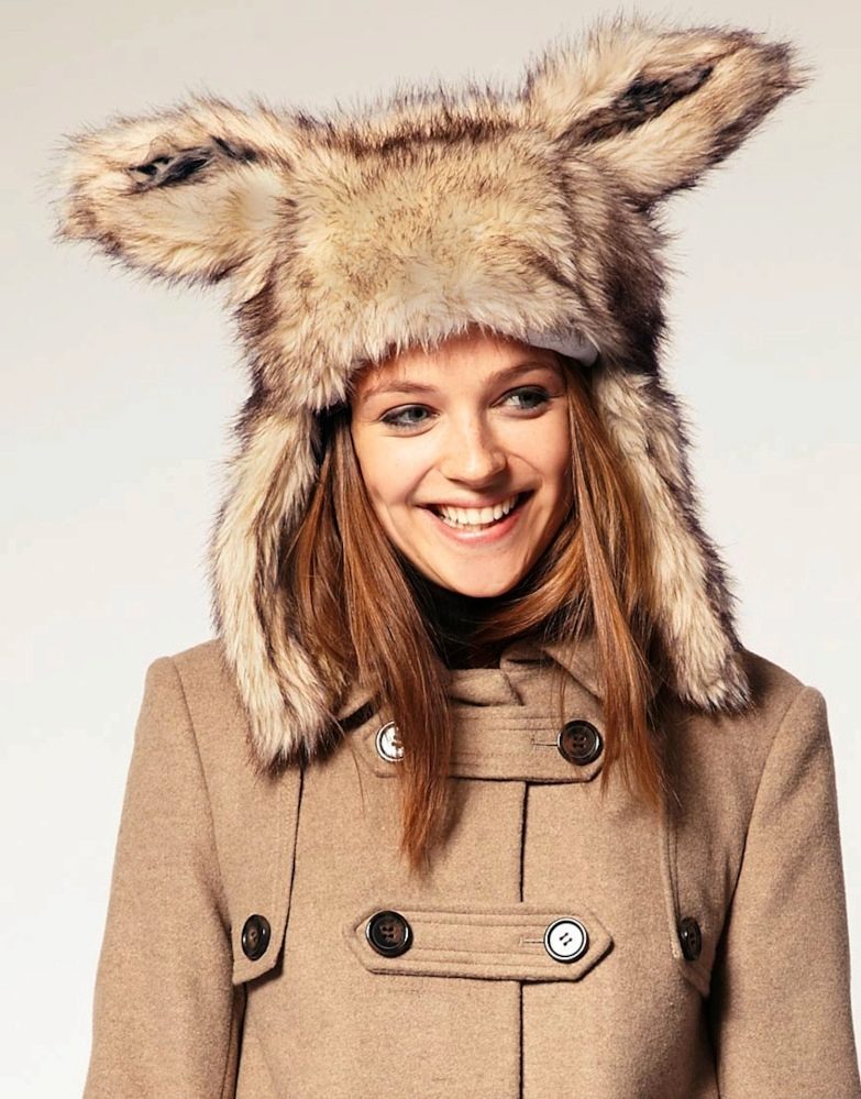 Fur caps this winter will still be in demand among teenagers. Knitted hats in the form of all sorts of funny little animals - hare, kittens, foxes, little mice, wolves, teddy bears, owls - will not leave anyone indifferent. Volkoshapki differ about zveroshapok those, that they sew from faux fur. It turns out pretty cute and naive image. Such cool hats not only uplifting, but also perfectly warm.