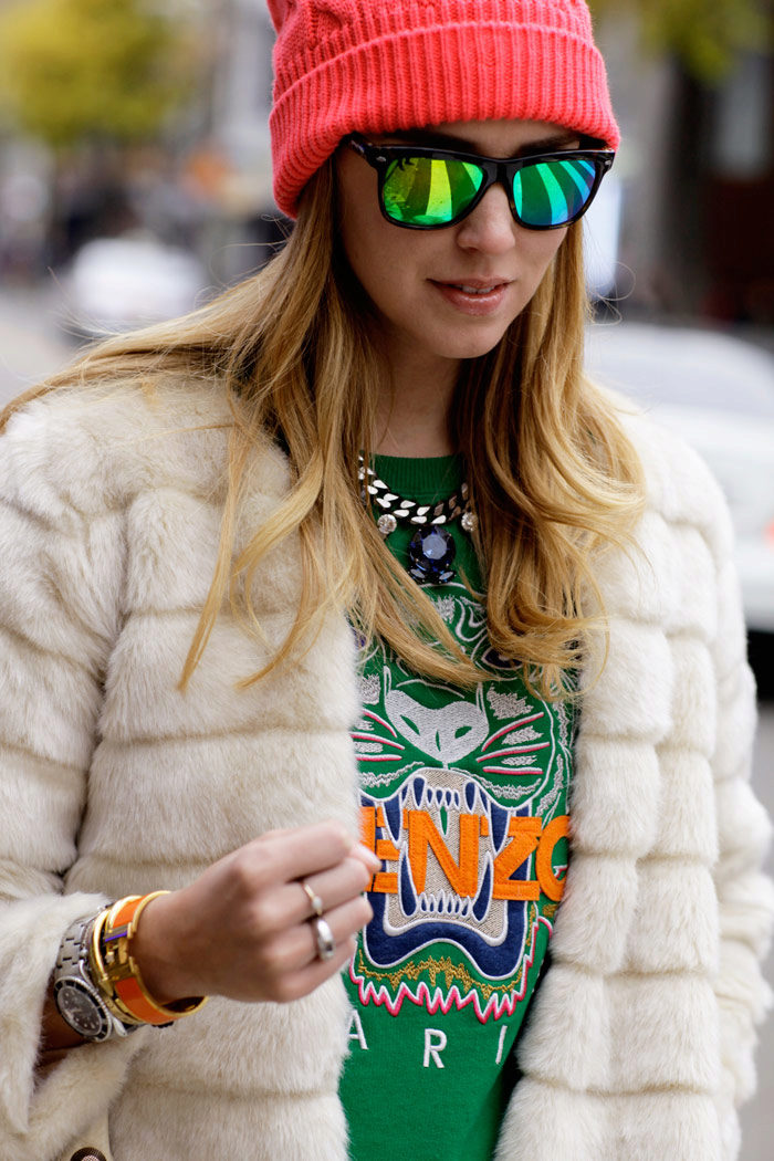 They wear knitted and woolen hats, hats, berets and fur hats like a classic winter wool coat. Knitted headdresses of various styles, beanie hats, volumetric caps and caps from long-haired fur are suitable for down-padded coats. Sports and blown jackets suggest knitted hats without a lapel, beanie and jacquard "Scandinavian" hats with a pompon. Parks are well combined with sports hats, caps, earflaps and volkoshka.