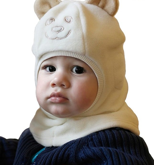In winter, it is especially important to warm newborn babies, because the surface area of their head is rather large compared to the rest of the body, and even stationary lying in a wheelchair does not contribute to enhanced warming. Therefore, it is important for babies to choose a warm, eco-friendly and pleasant to the body cap. As an option, pry a helmet made of fine, stubby wool under the main winter hat. The cap itself should be fixed on the head on the strings, otherwise it can slide on its side while sleeping in the fresh air, and in winter it means the risk of colds.