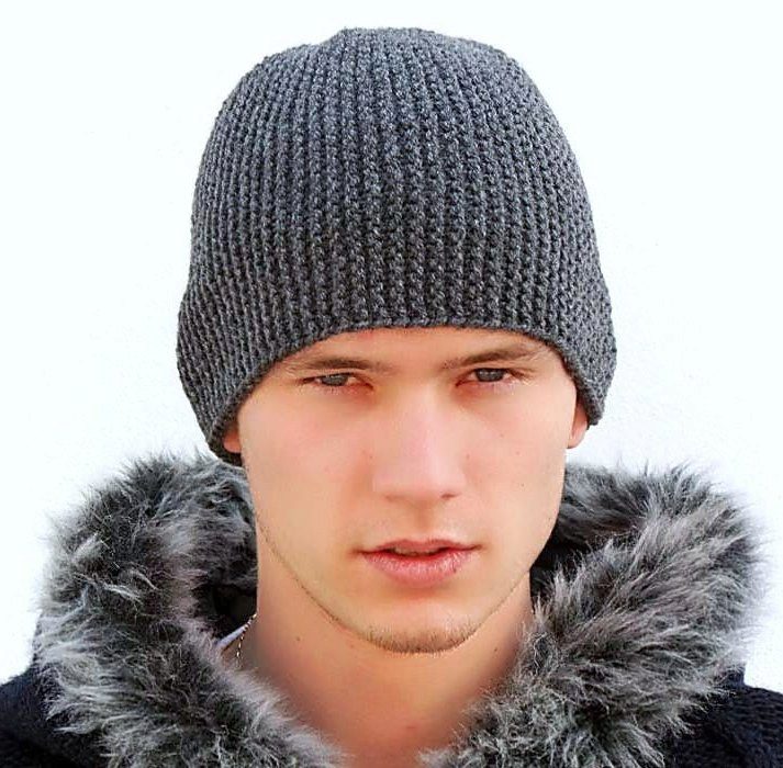 Among young men winter knitted hats of inconspicuous flowers are the most popular for every day. For outdoor activities, a neutral hat with an unobtrusively knitted pattern or an inconspicuous Scandinavian motif is often selected, topped with a small pompon made of threads of the same color as the hat itself.