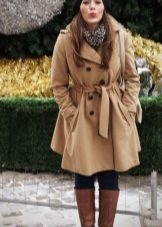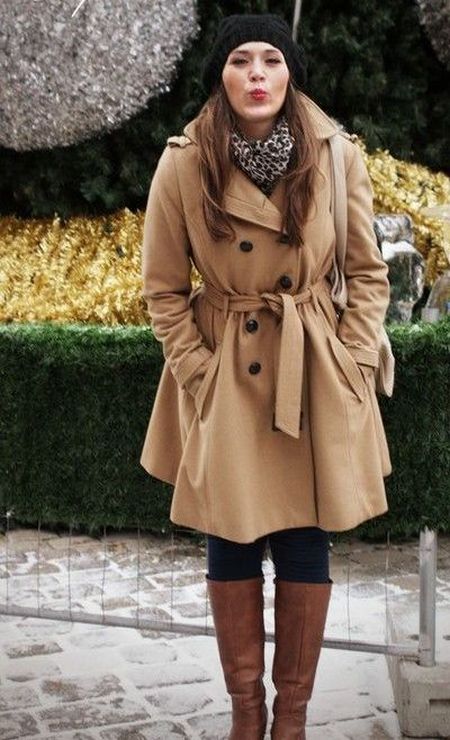 Beige color It has long been recognized as a classic on a par with black. The beige coat has the unique ability to combine with a variety of fashionable shades and prints. With a beige coat bright coral, mint orange and black colors look spectacular. The noble combination of a light beige coat with accessories in dark chocolate will create the image of an "expensive" woman. For a beige coat, you can choose good hats two or three tones darker or lighter tones of the coat.