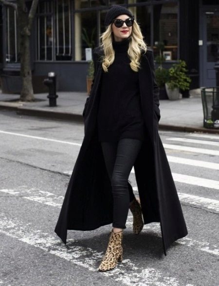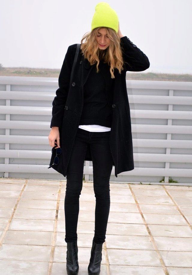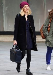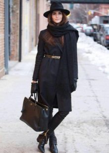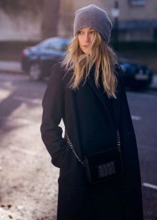Universal black color coat gives his mistress a huge selection and a wide color palette of hats. To a black coat you can buy a hat of any light, pastel color. Perfect juicy shades of red, orange, turquoise, blue, yellow or mustard.